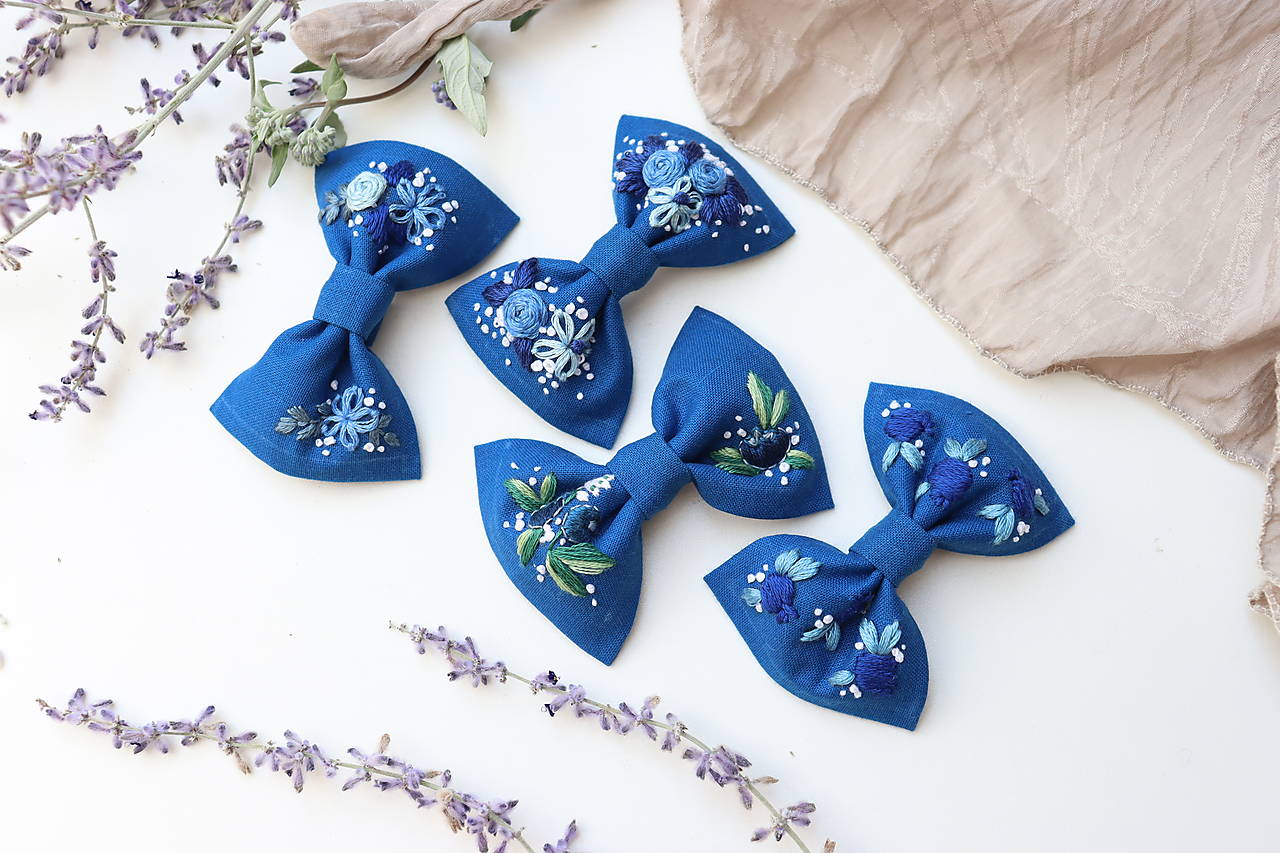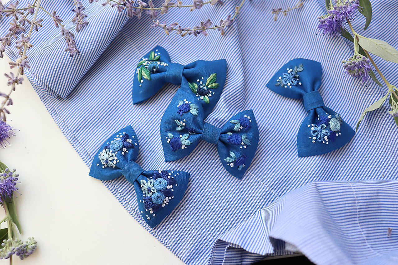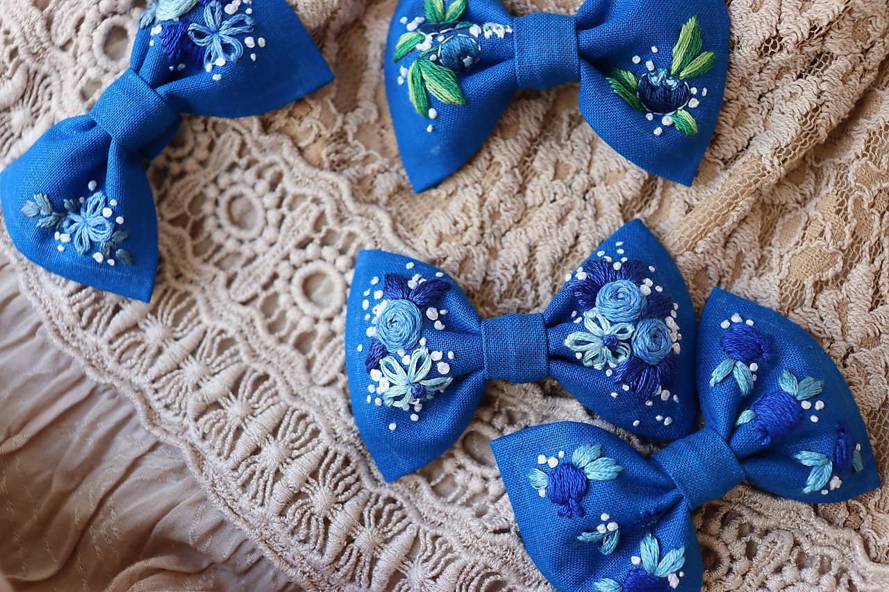 Mašličky sú vyšívané ručne a ušité z kvalitnej bavlnenej látky. Výšivka je pevná a odolná. Vyrobím Vám ich v rôznych farbách s rôznymi vyšívanými motívmi (kvety, lístky, symboly, iniciály...)