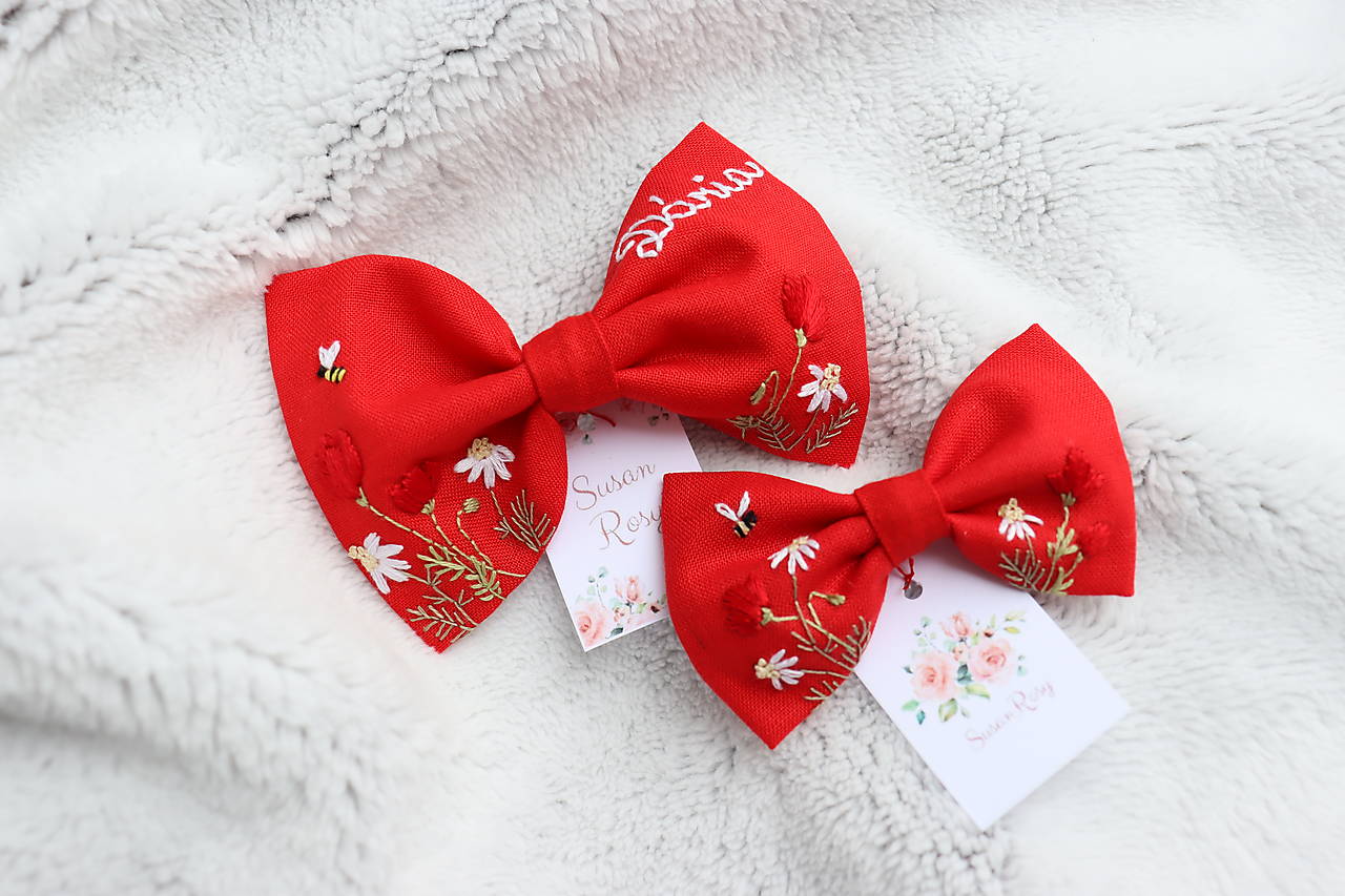 ♡ Tieto červené mašličky sú vhodným doplnkom na detský kočík proti urieknutiu. Na mašličku Vám zadarmo vyšijem meno alebo iniciály bábätka :)