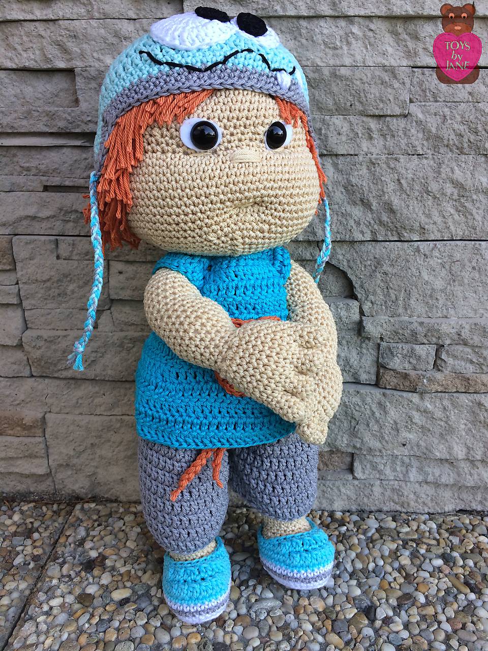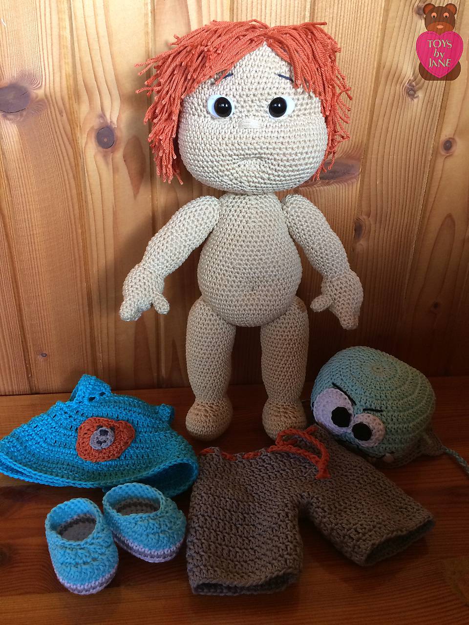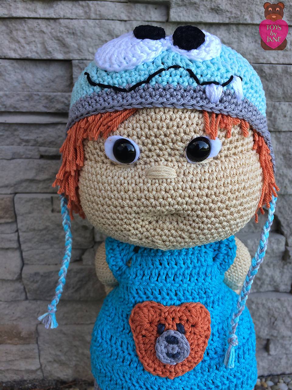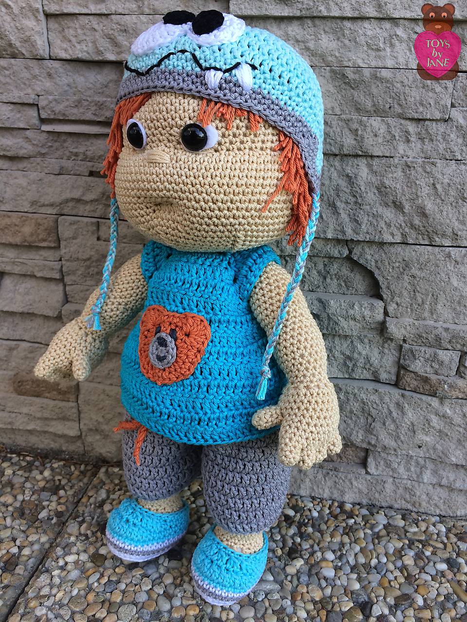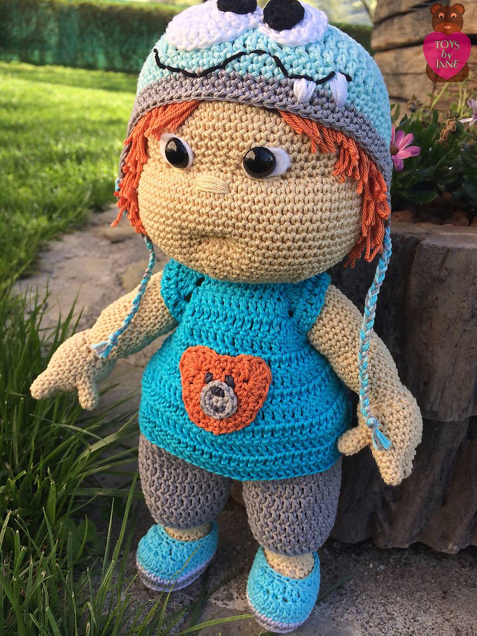 Oči sú bezpečnostné, so zarážkou, podšité bielym filcom. Vlásky sú viazané jednotlivo a je možné ich prečesať riedkym hrebeňom . Chlapček a aj celé oblečenie sú zo 100% bavlny.