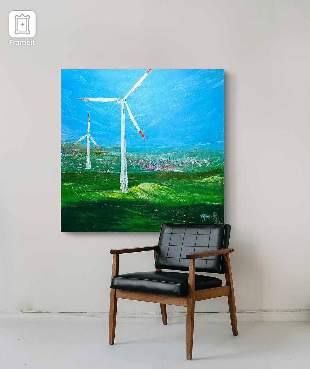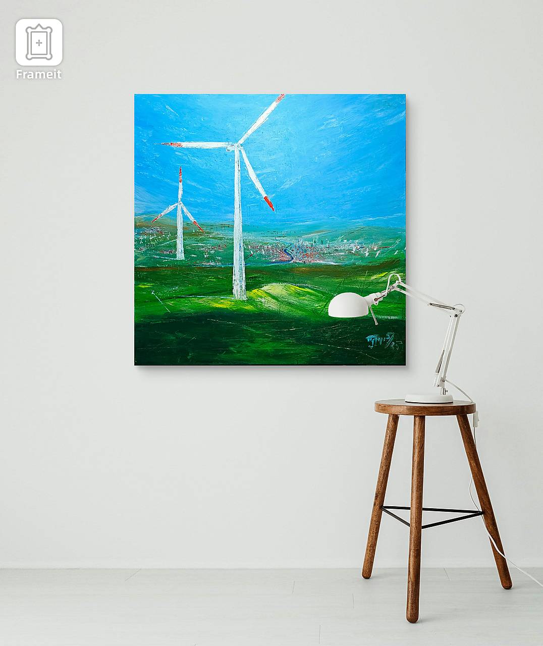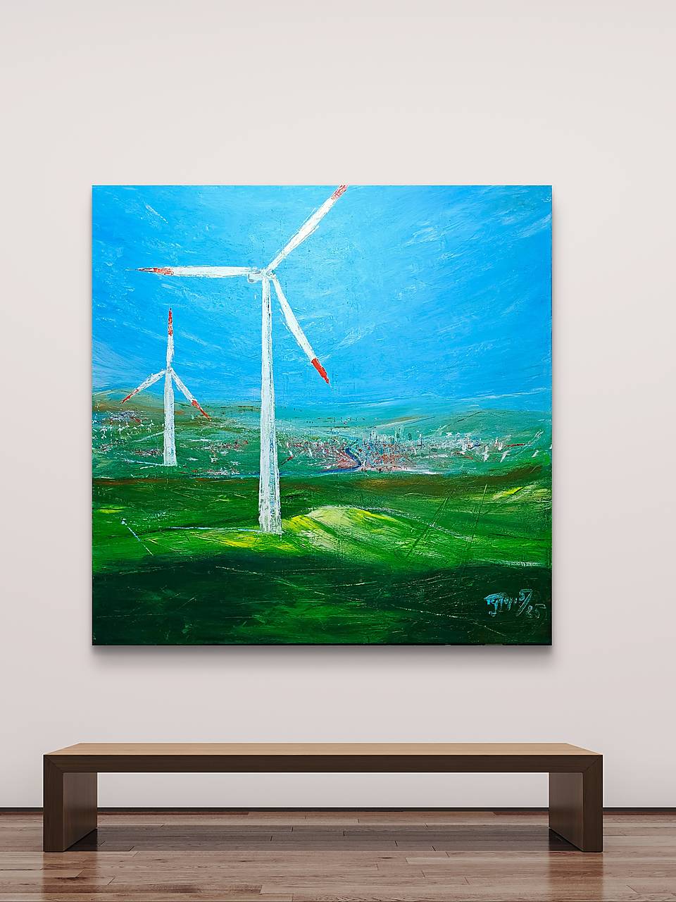 Pracovná inšpirácia a osobná vízia budúcnosti. Energia a téma veterného zdroja je aktuálna a verím, že je dôležité ju propagovať. Možno si niekto myslí, že takéto témy nepatria na plátno, ale ako fanúšik modernej tvorby som sa rozhodol zobraziť svoju mlčiacu víziu.