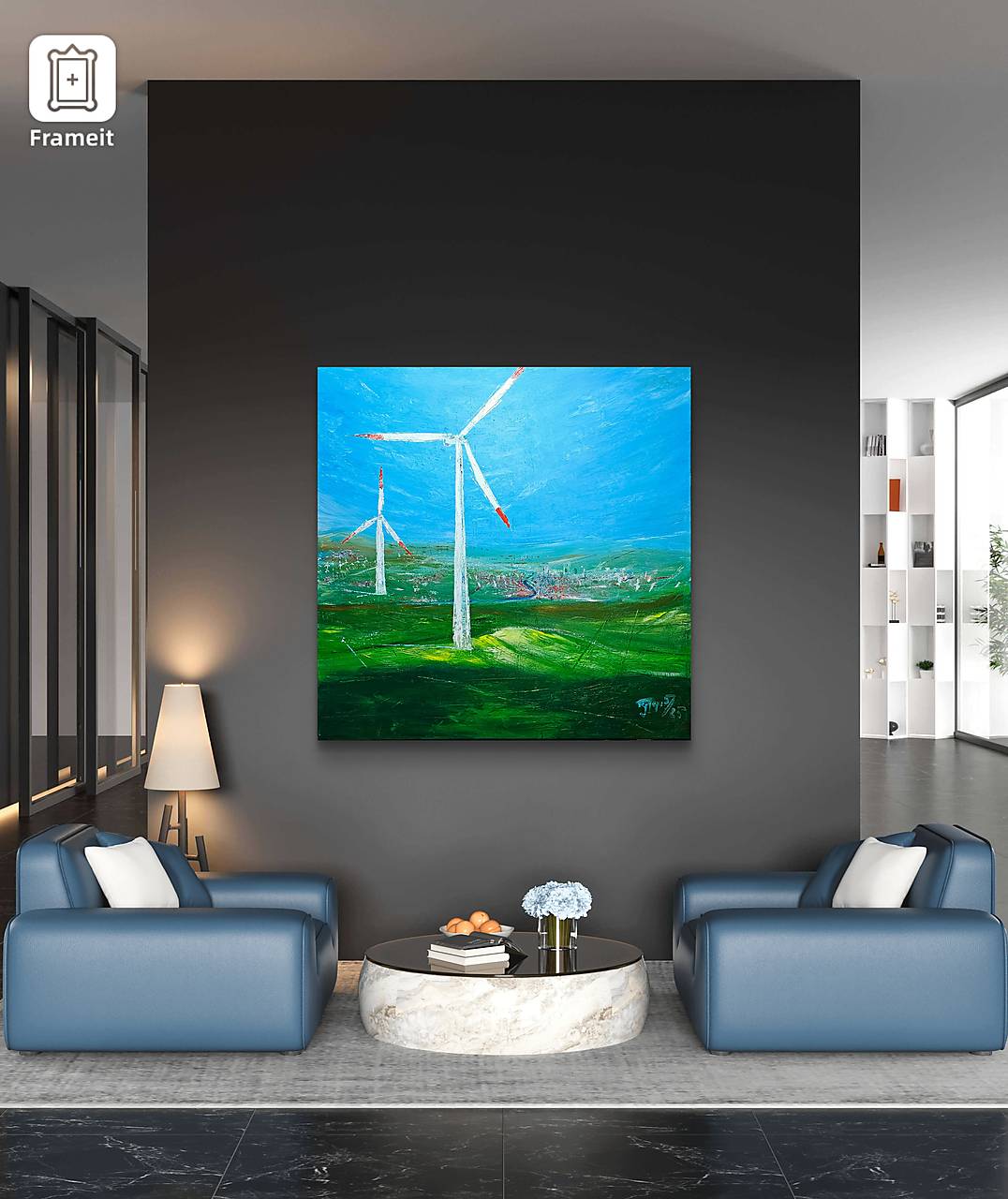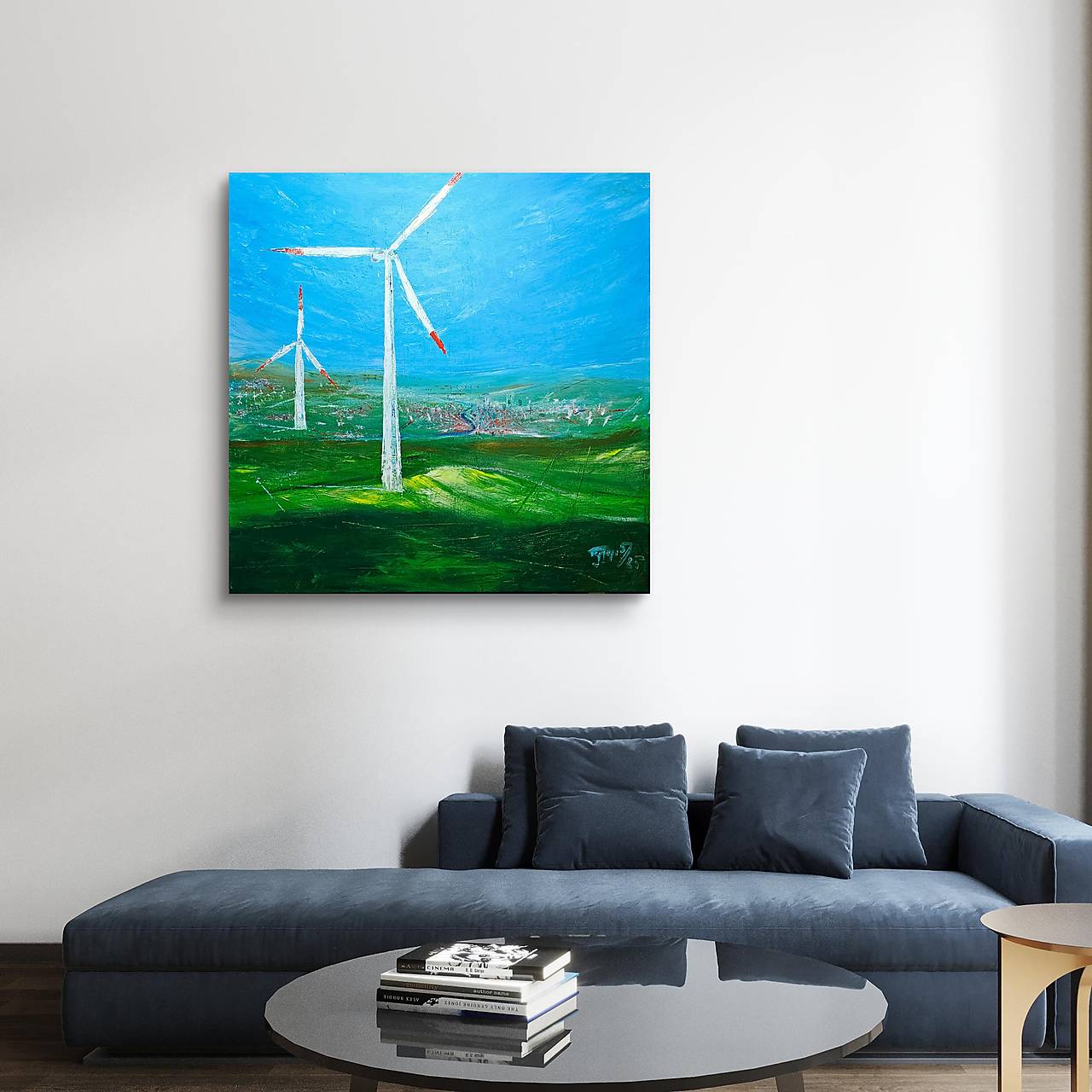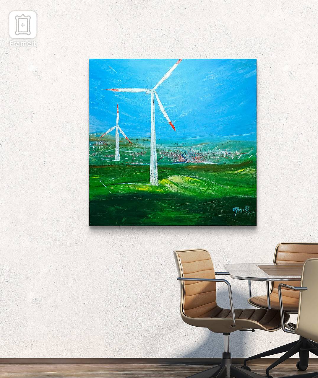 Pracovná inšpirácia a osobná vízia budúcnosti. Energia a téma veterného zdroja je aktuálna a verím, že je dôležité ju propagovať. Možno si niekto myslí, že takéto témy nepatria na plátno, ale ako fanúšik modernej tvorby som sa rozhodol zobraziť svoju mlčiacu víziu.