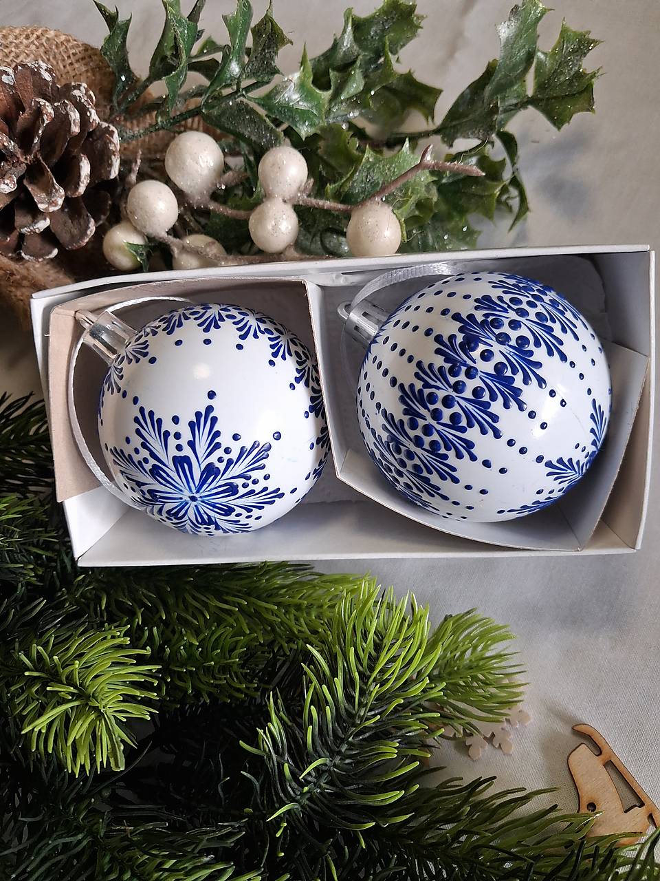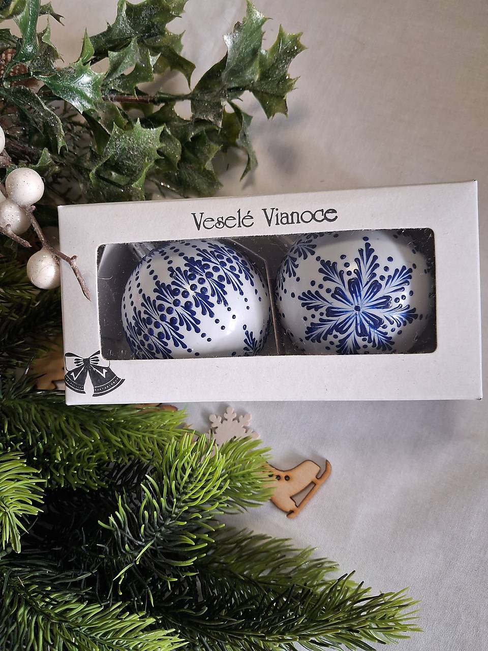 Druhá varianta- darčekové balenie. V darčekovom balení sú dve vianočné gule.