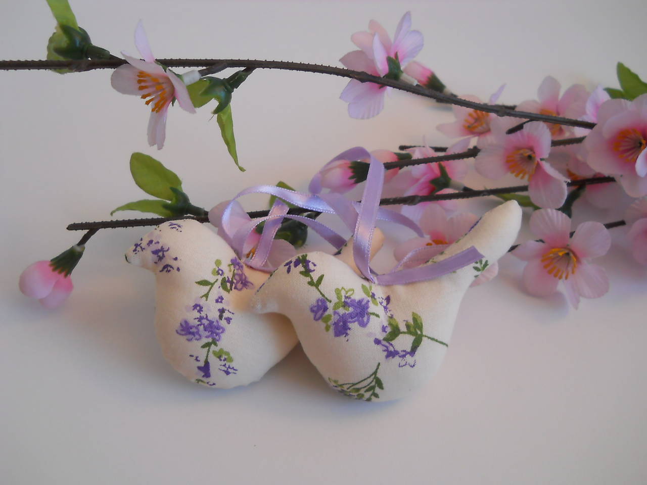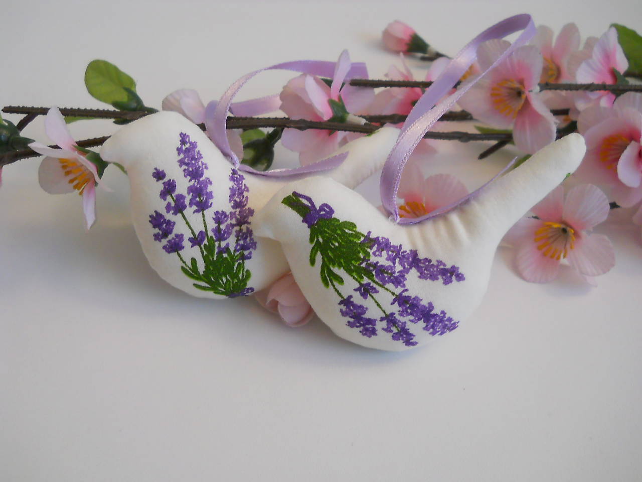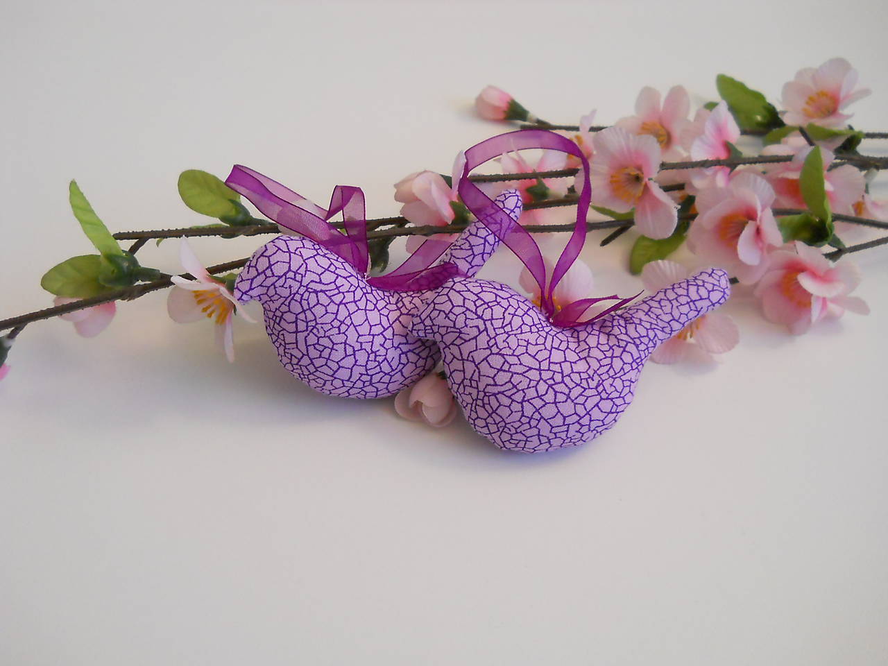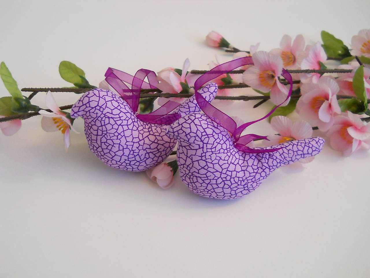 Textilná dekorácia vtáčika je ušitá z bavlnenej látky . Výplň je polyesterové duté vlákno . Zdobený stužkou na zavesenie.