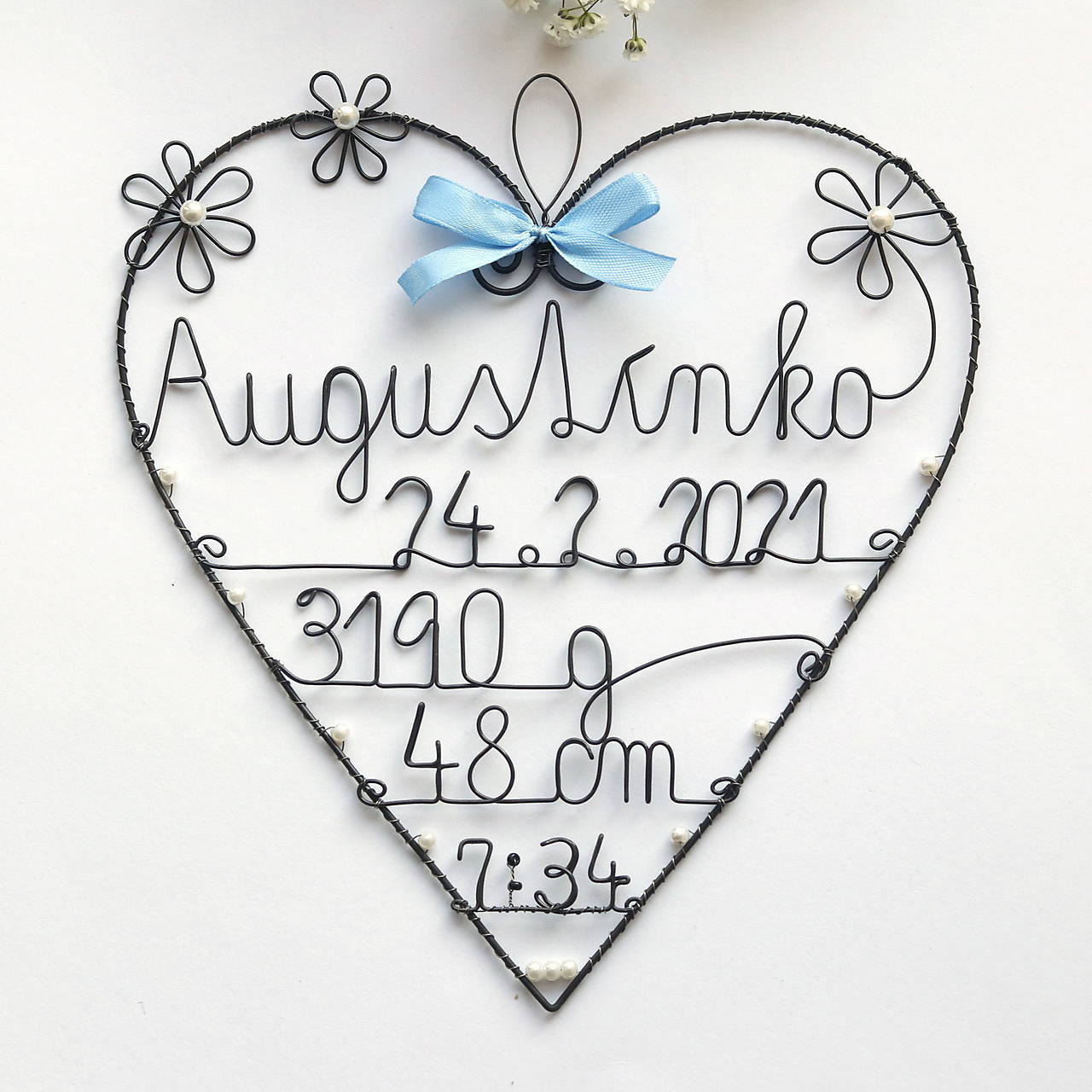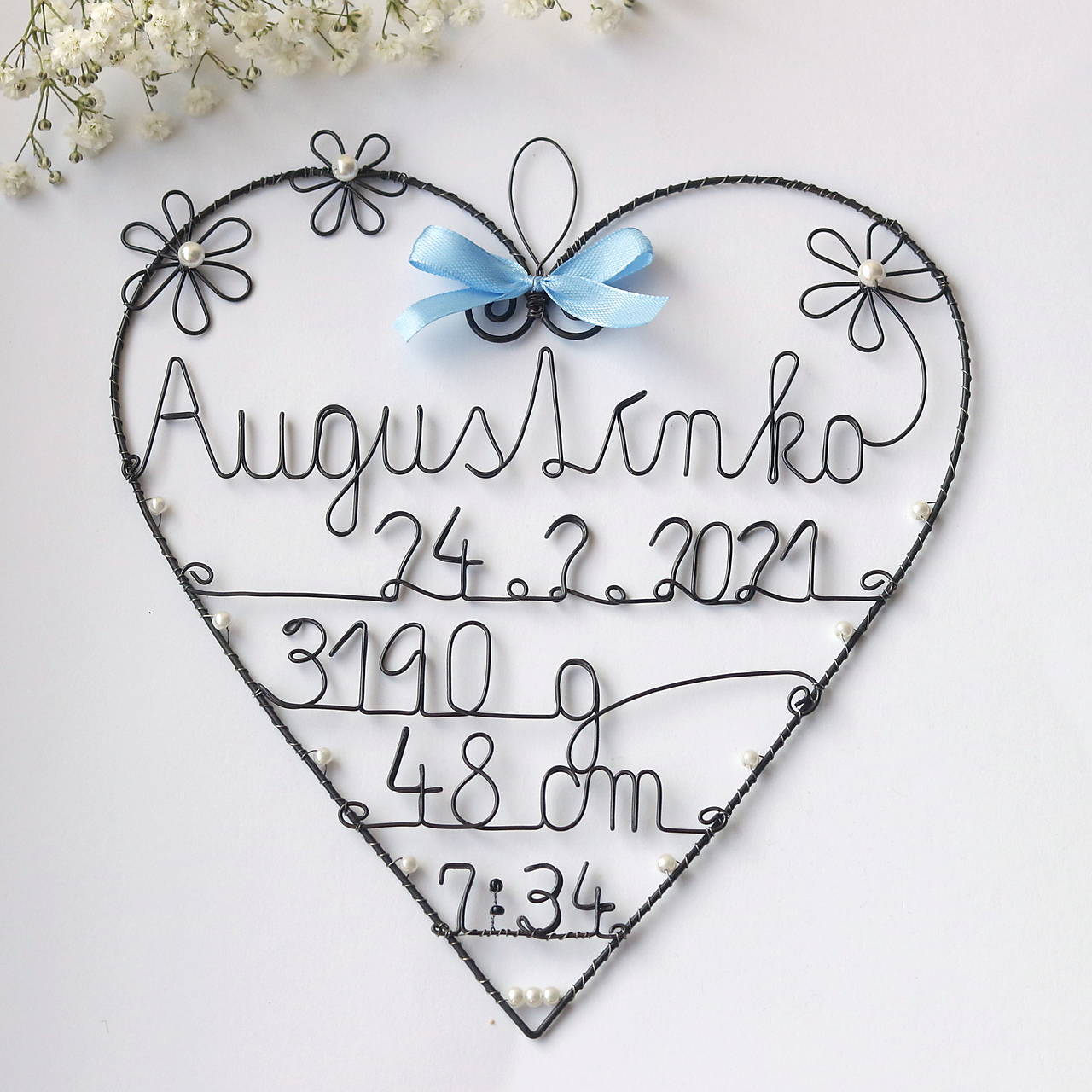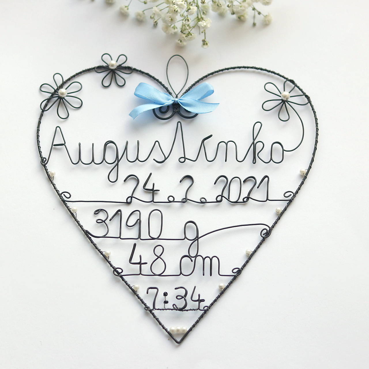 Toto srdiečko som robila na objednavku, podľa predstavy zákazníka. Podobné môžem vyrbiť aj pre Vaše babätko. Farebnosť mašličky a korálikov sa dá zmeniť.