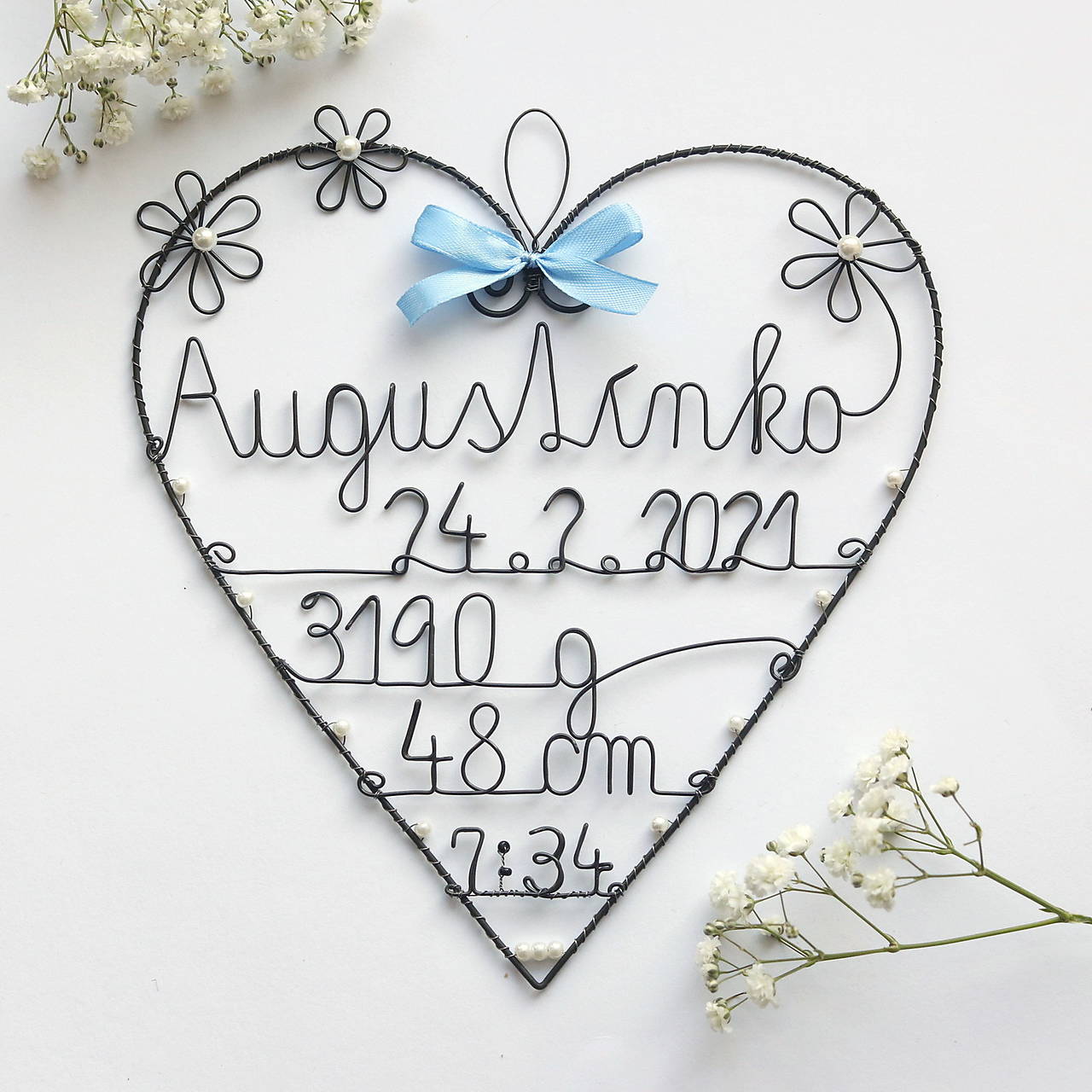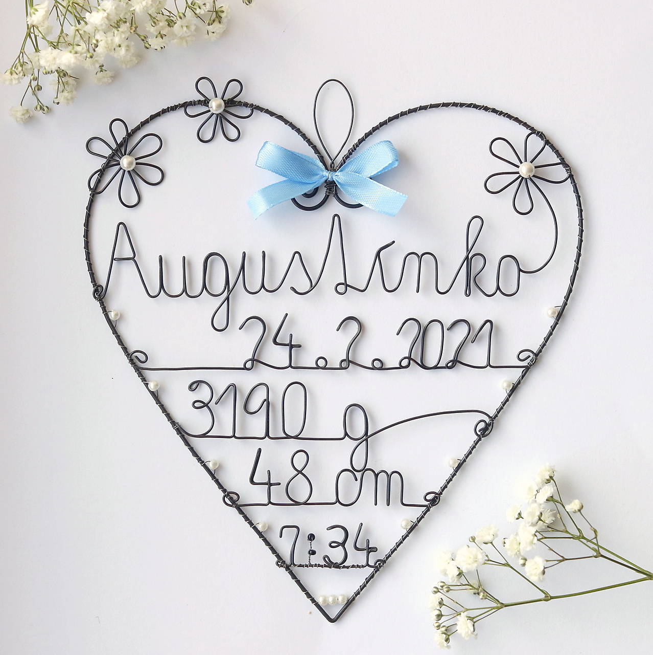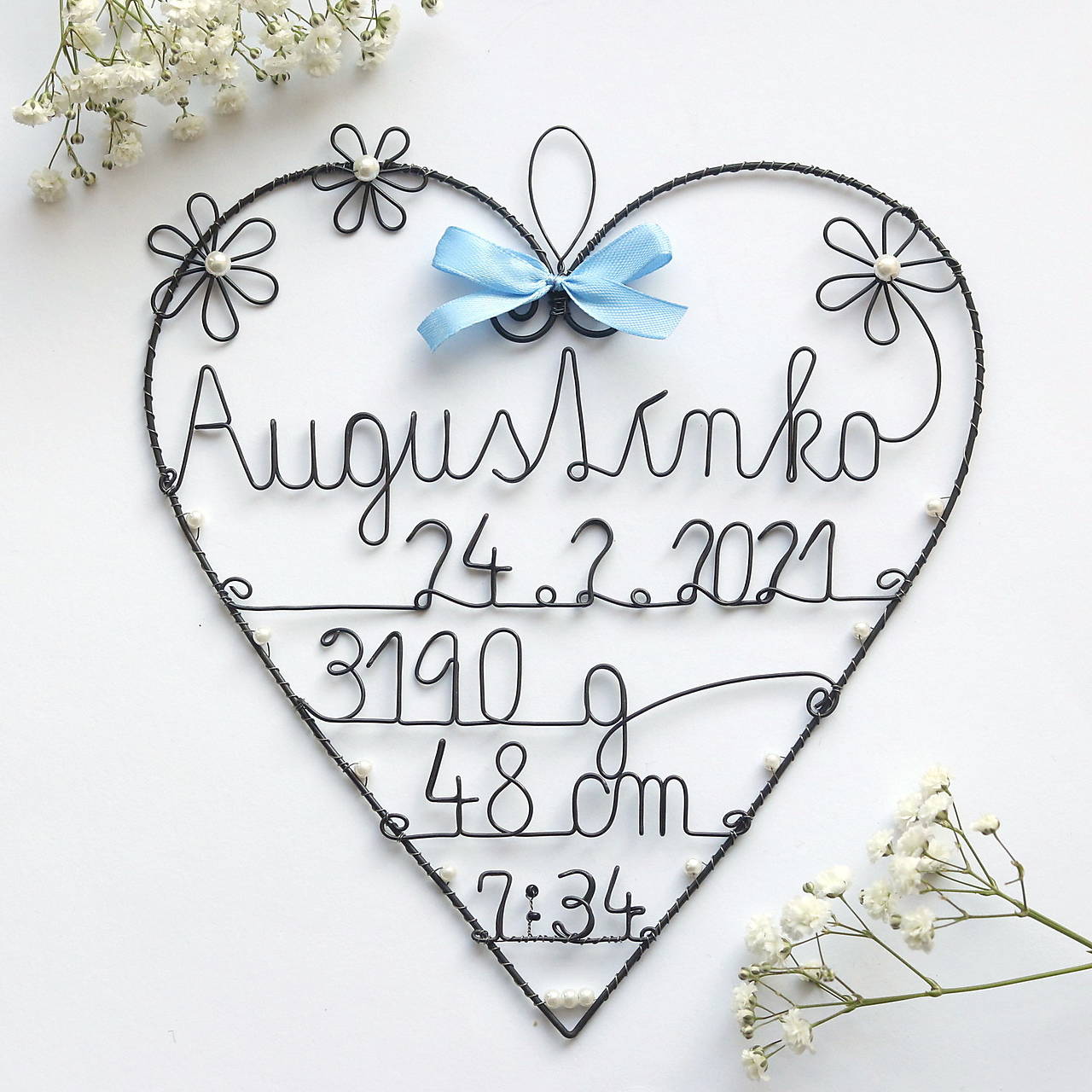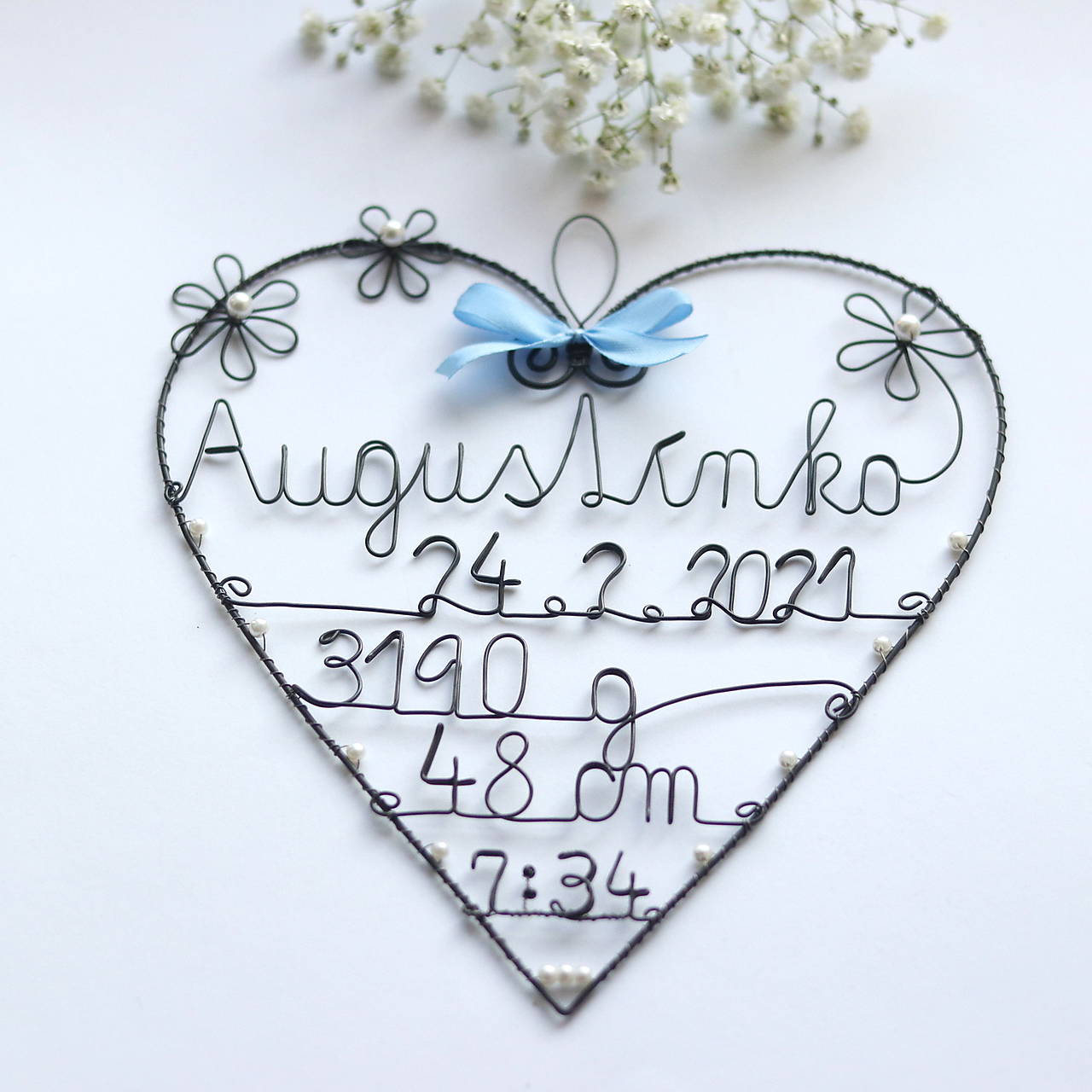 Toto srdiečko som robila na objednavku, podľa predstavy zákazníka. Podobné môžem vyrbiť aj pre Vaše babätko. Farebnosť mašličky a korálikov sa dá zmeniť.