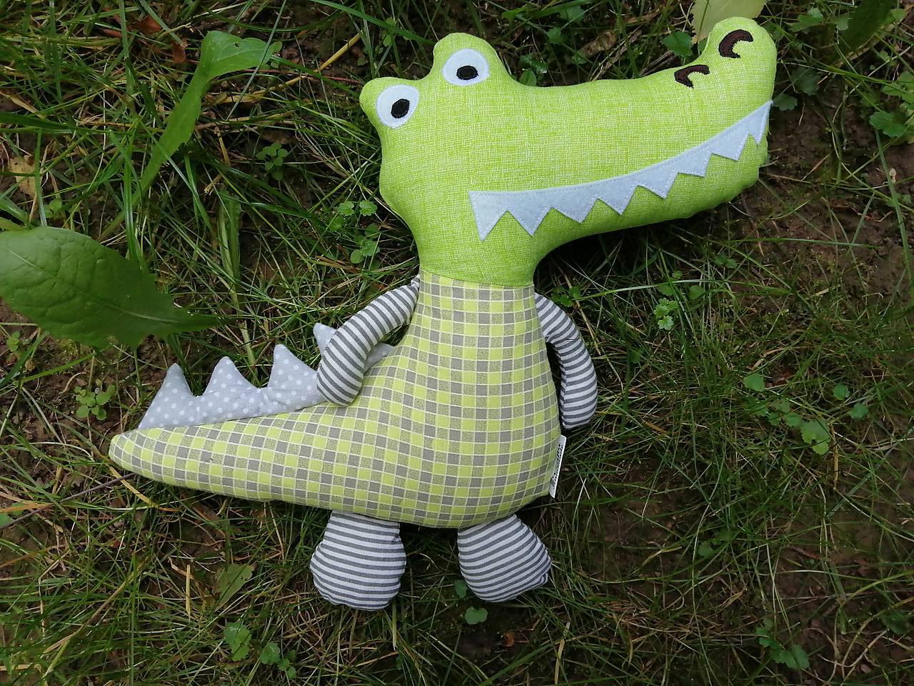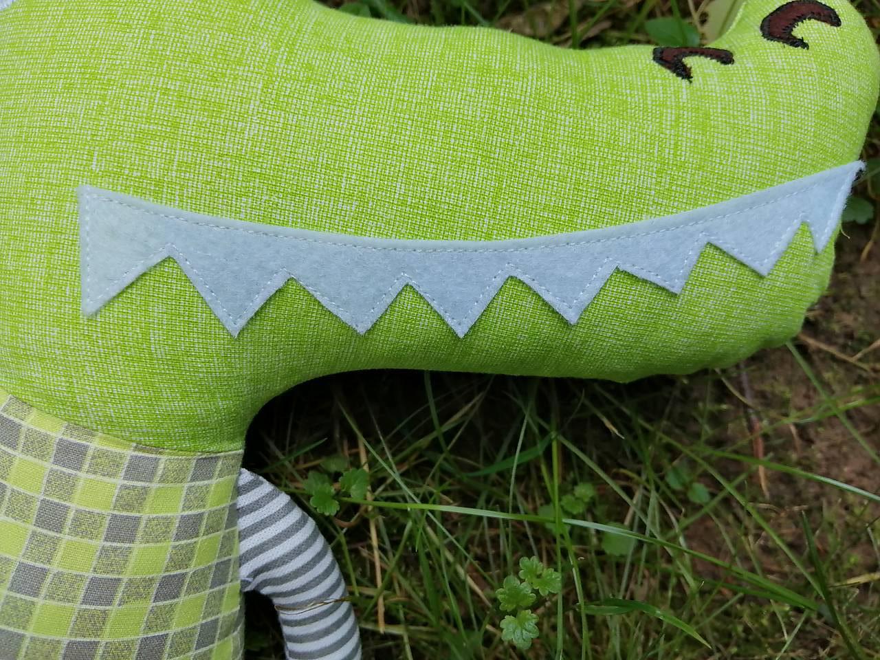 Krokodíl je vyrobený z kvalitných 100% - ných látok, ktoré sú vopred vyprané. Vyplnený je antialergickým dutým vláknom. Zuby, oči a nozdry sú z filcu a sú strojovo prišité.
