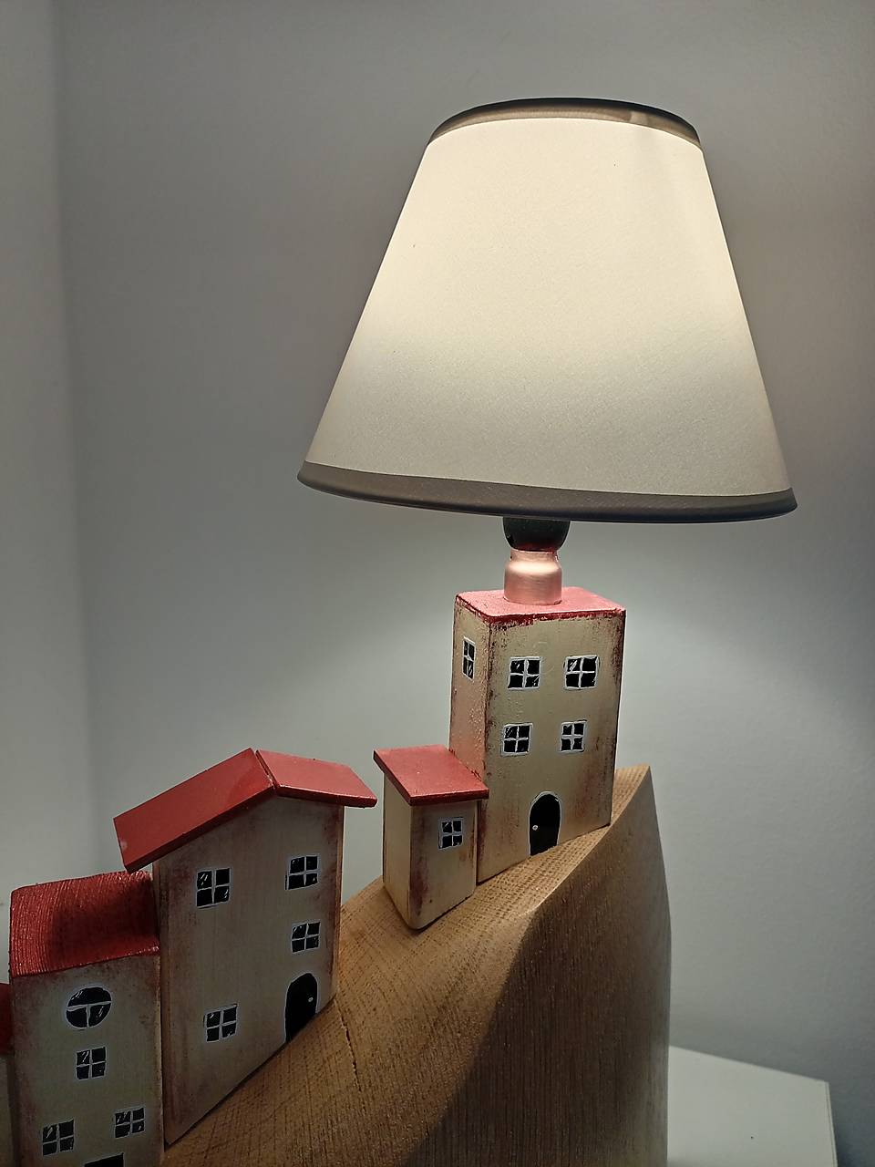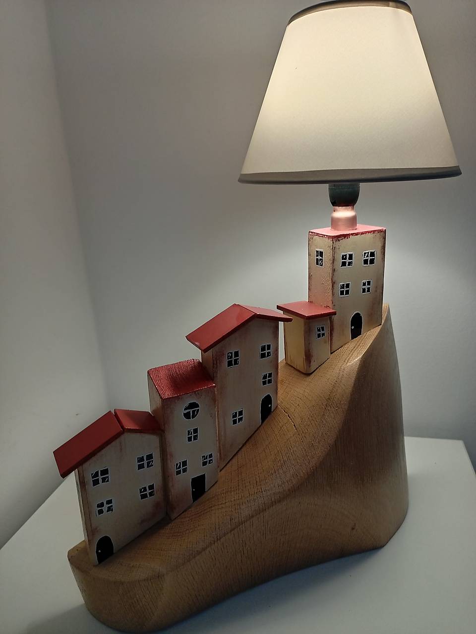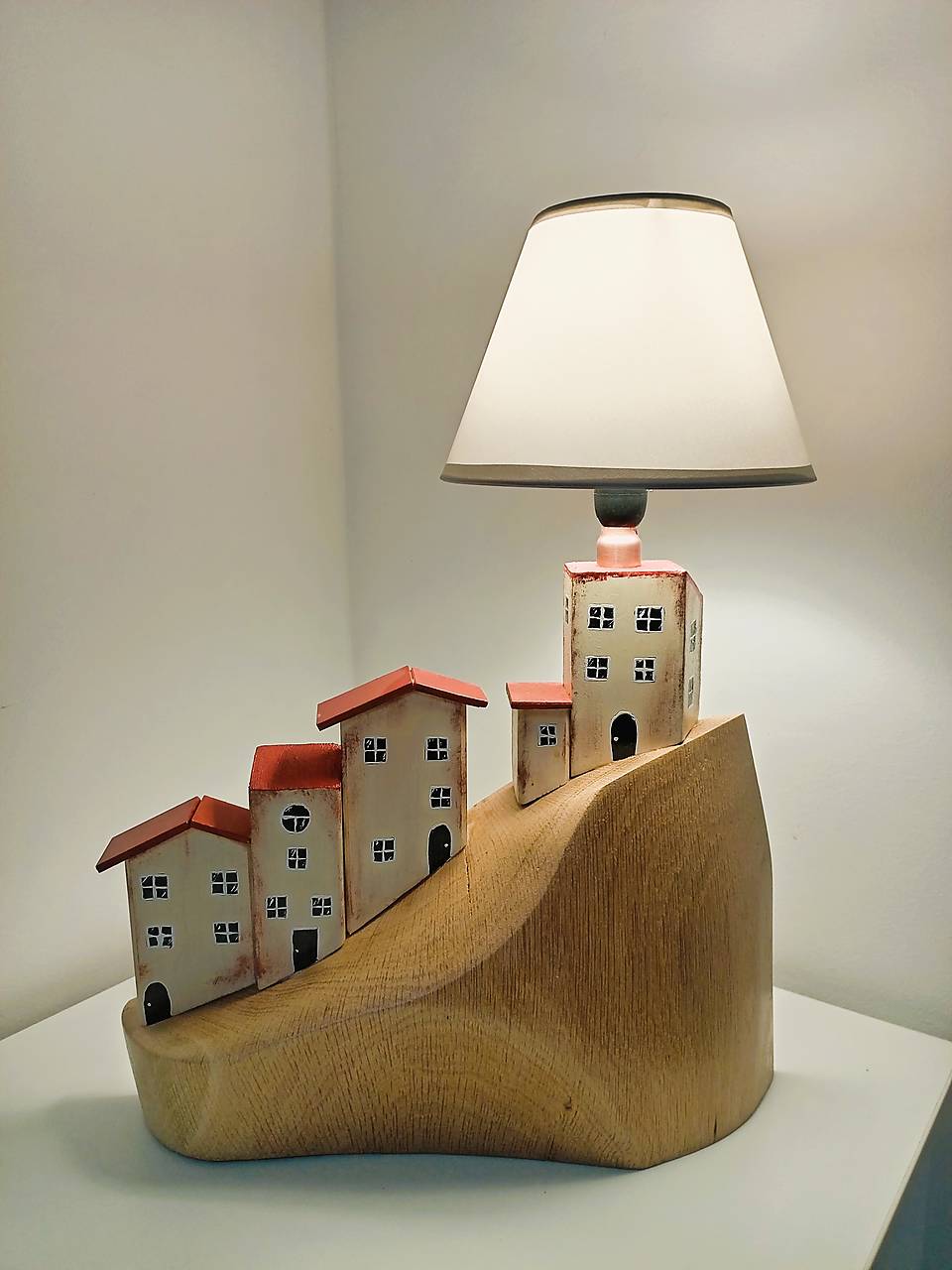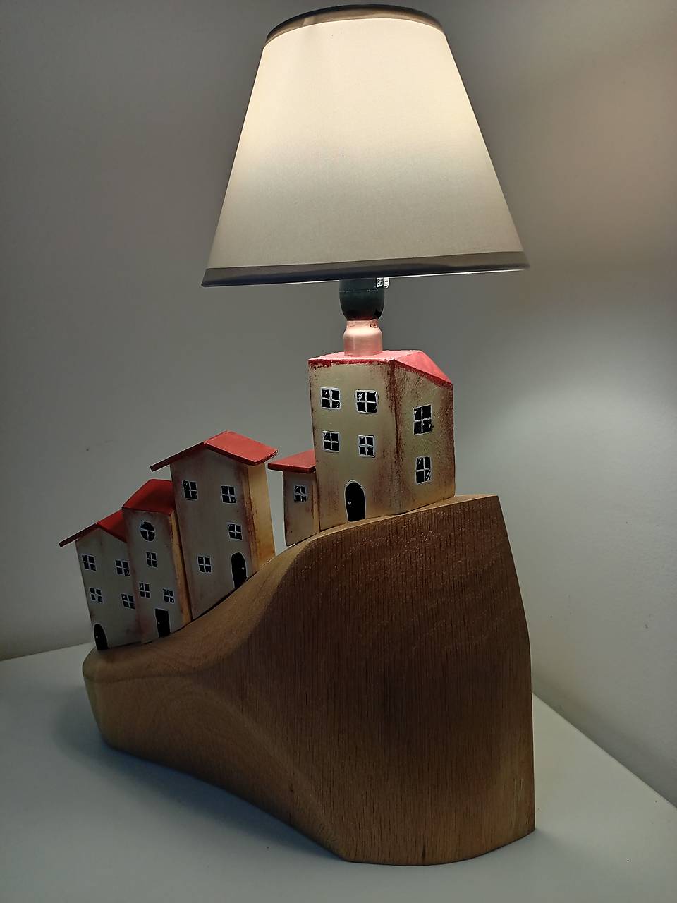(táto sa už predala na inej stránke, ale rada vám vyrobím podobnú) Ďakujem, ze ste nakukli na našu krásnu ručne vyrezávaná a maľovanu lampu. Je vyrobená z orechového dreva, domčeky zo smrekového,ktore sú ručne maľované. Je a bud elen jeden kus z tejto krásy. Verím, ze sa každý poteší tejto originálnej a dizajnovej lampe. Je maľovaná aj z druhej strany