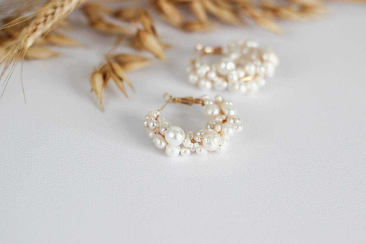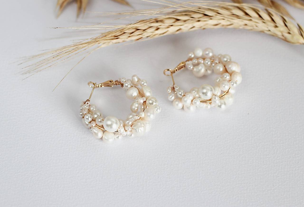 Kruhové náušnice Júlia sú jedinečným šperkom, ktorý spája prirodzenú krásu riečnych perál s jemnosťou ručnej práce. Každý pár je originál – perly rôznych tvarov a veľkostí sú ručne navinuté na pozlátený základ, vďaka čomu pôsobia bohato, no stále nežne.