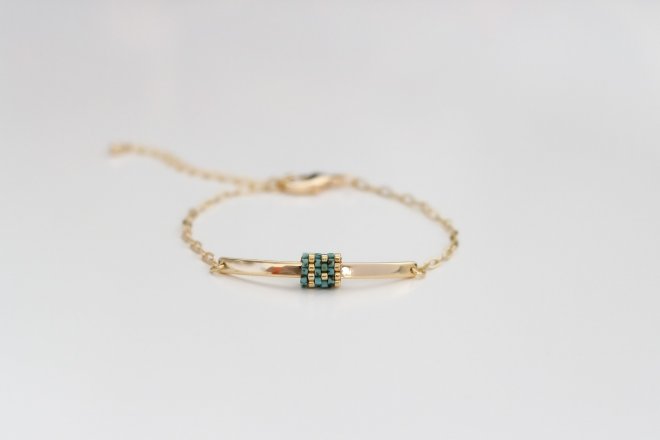 Elegantný náramok v tyrkysovo-zlatej farebnej kombinácii je ideálny na každú príležitosť.
