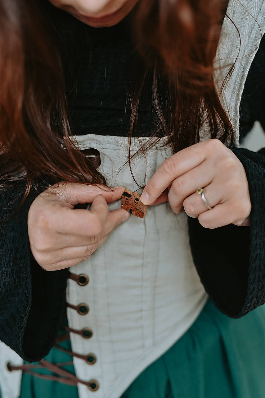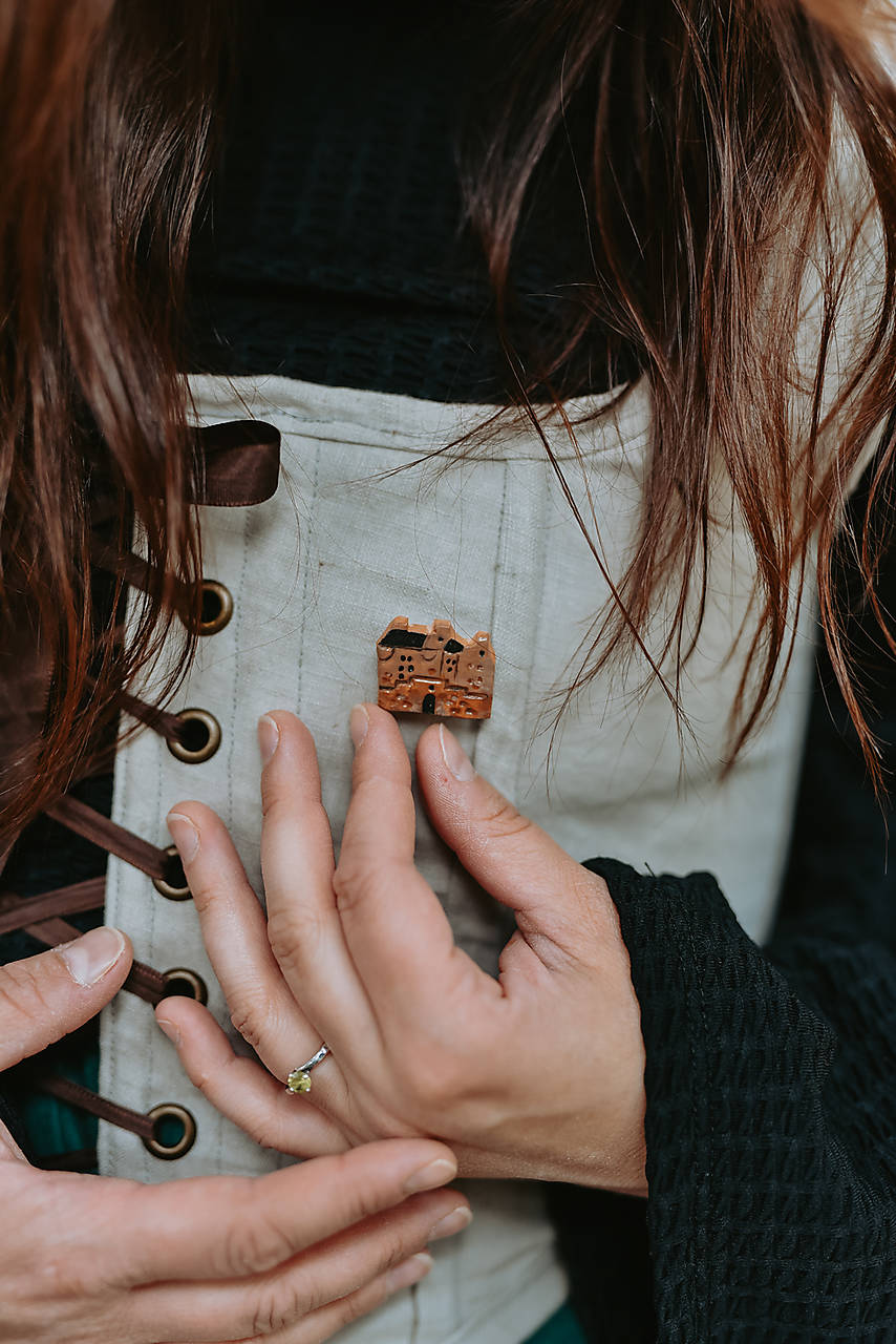 Autorská brošňa Lallybroch, ktorej dizajn je inšpirovaný známym ,,Midhope Castle" je v jemnom minimalistickom štýle a krásne doplní hocijaký outfit, bundu, kabelku,šál či sveter.