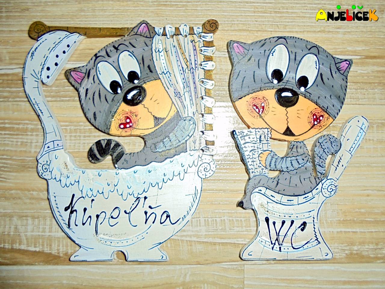 Veľkosť: WC výška 13,5 cm, šírka 8,5 cm, , kúpeľňa výška 13,5 cm šírka 11 cm.