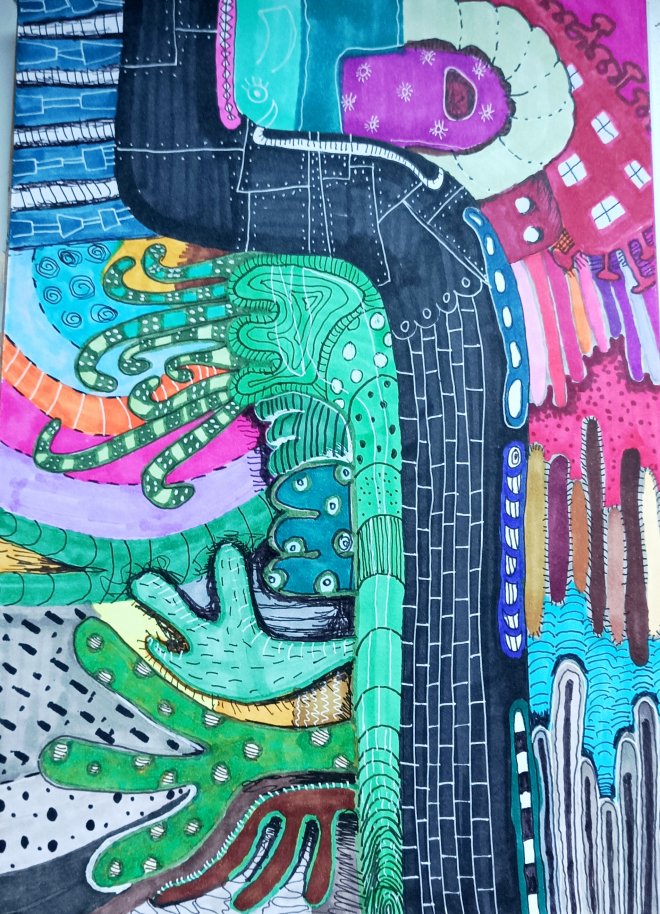 Štrikovanie má tú nevýhodu, že na konečný dojem si musíte počkať. S fixkami to ide ľahšie. Neviem dokedy mi tento zápal vydrží, zatiaľ sa z neho teším.