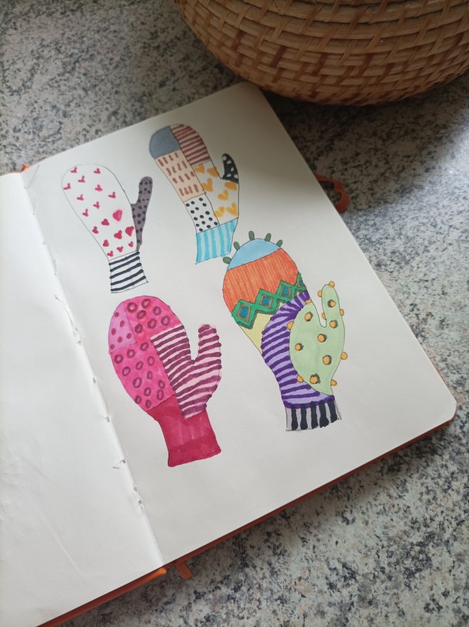 Najprv som ich použila ako inšpiráciu pre pletenie rukavíc. Myslím, že úspešne.