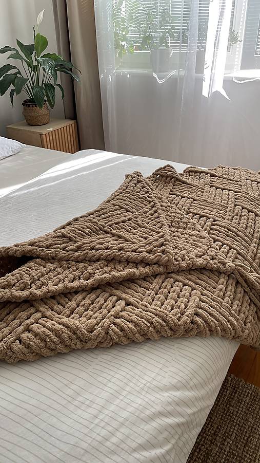 Veľký exkluzívny hrejivý ľanový prehoz hnedej farby "Brown" 160x100cm