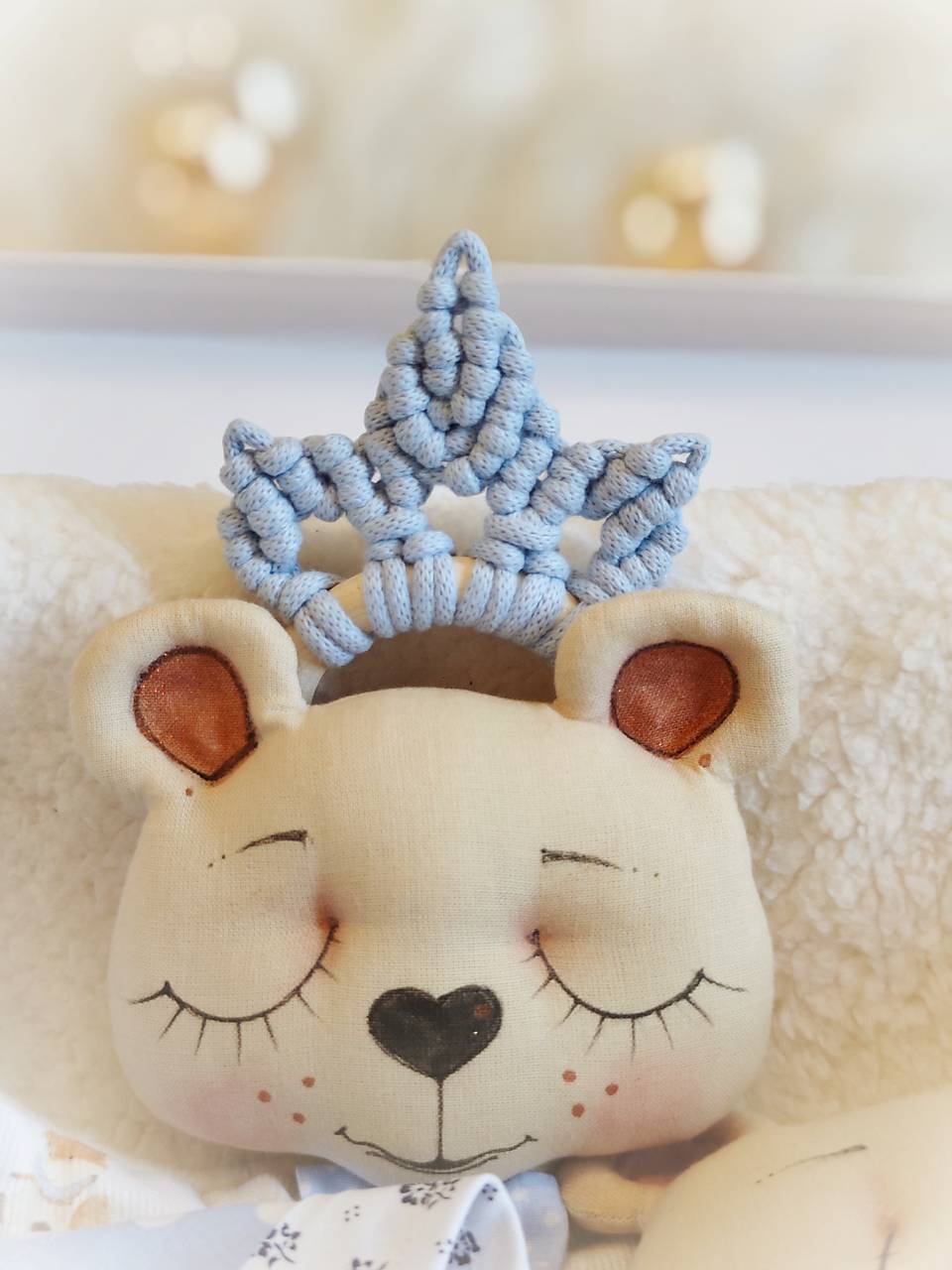 Detský set .Macík mojkáčik ,macík postavička, nákrčník ,textilné ušká a korunka pre princa