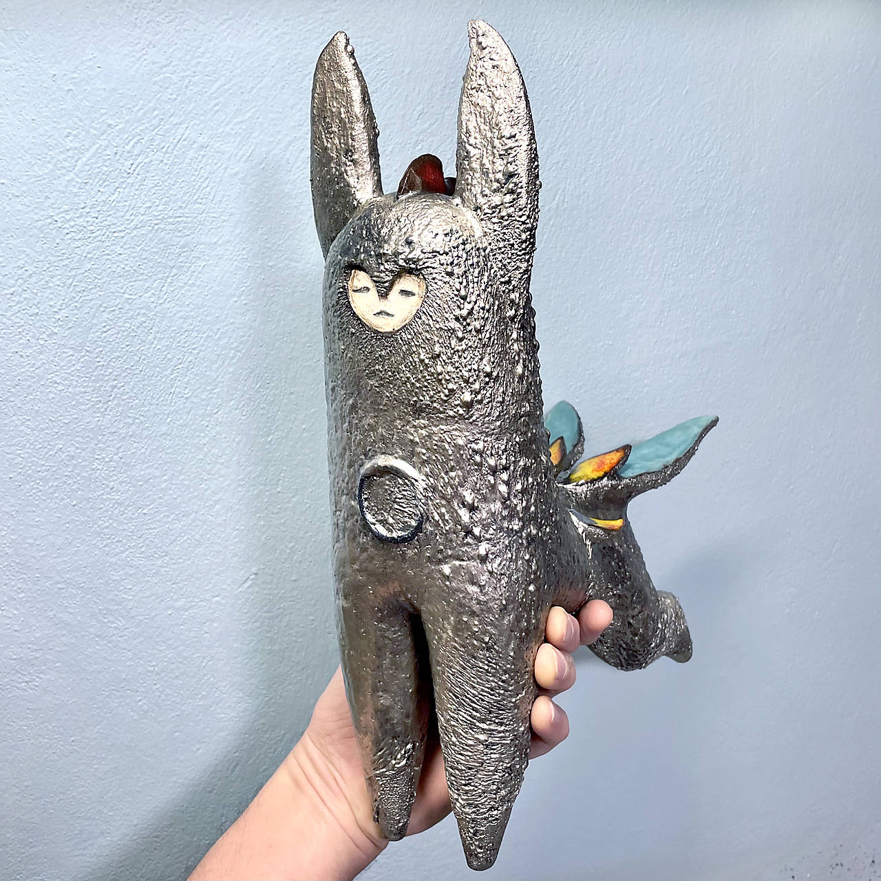 Ručne modelovaná keramická socha predstavuje jedinečné umelecké dielo, ktoré spája zvieracie a ľudské elementy v podobe mýtického tvora. Táto bytosť, nesúca charakteristické črty inteligencie a personifikácie, symbolizuje novodobého kentaura – harmonické spojenie dvoch svetov, prírodného a ľudského, ktoré sa stretávajú na hranici reality a fantázie.