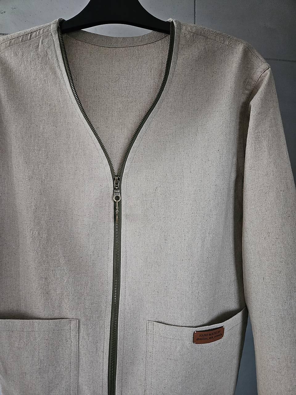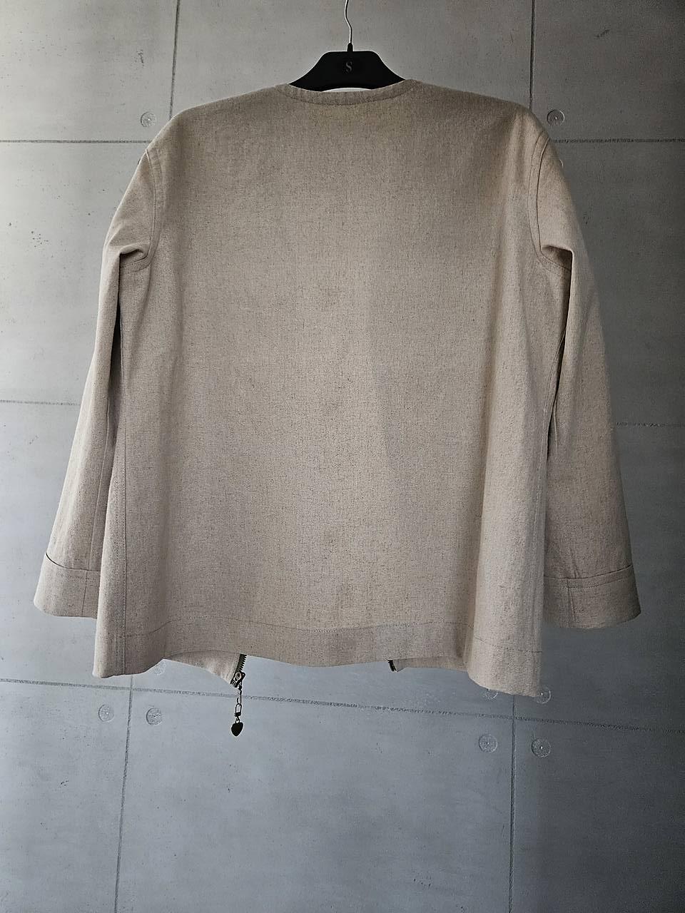 Toto komfortné autorské sako / sveter je ušité zo zmesi ľanu s viskózou v prírodnej pieskovej farbe.