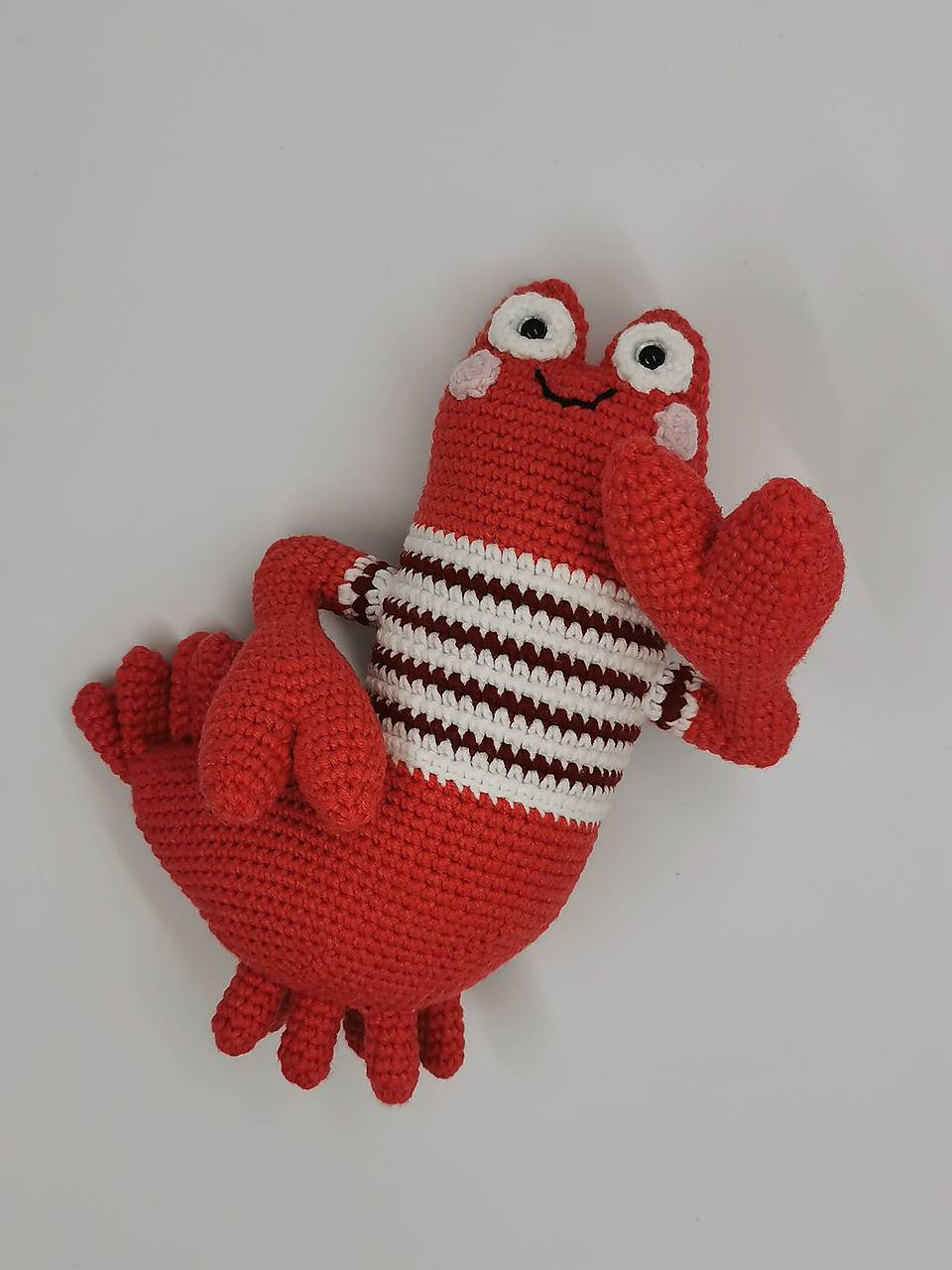 Háčkovaný rak vo stveríku je uháčkovaný z príjemnej zmesovej bavlnenej priadze (55% bavlna + 45% polyester). Vyplnený je antialergickým polyesterovým vláknom. Doplnený je o bezpečnostné oči. Toto milé zvieratko určite poteší každého nadšenca morského sveta.