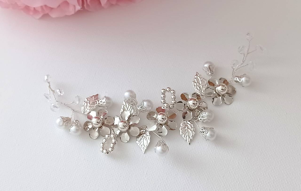 Svadobná kvetinová vlásenka - s riečnou perlou 1ks