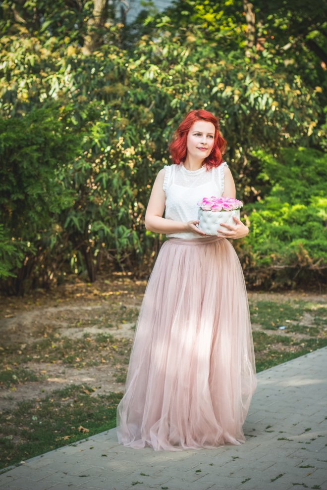 tylová sukňa Zoot, topík F&F, kvetinový box Luxury Day