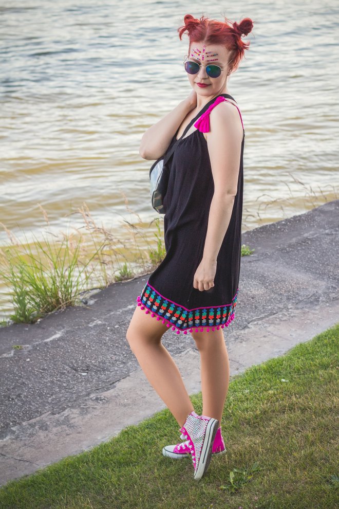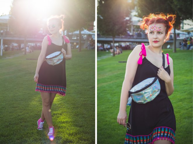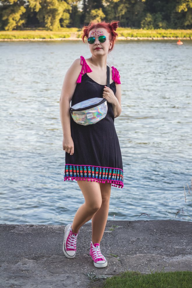 Áno, áno… leto a festival, to k sebe jednoducho patrí. Najkrajšie na týchto fesťákoch je to, že tam sa móda nepíše a nemá hranice. Tam jednoducho môžete kombinovať aj to, na pohľad nekombinovateľné. Vždy sa však treba pripraviť, ako na chladné dni, tak aj na tie, kedy máte chuť umrieť z toľkého slnka. Musíte myslieť aj na svoje pohodlie a voľnosť pohybu, ako aj na to, aby ste nestratili cenné veci ako mobil, peniaze a pod. Ja som vám v tomto prípade nakombinovala taký viac letný look na tie slnečnejšie dni. Síce bez klobúka, ale myslím, že pri menšej obmene by styling zniesol aj ten. No všímajte si tú vychytávku v podobe mega super fest ľadvinky. Máte kde dať cennosti, ale zároveň máte voľné ruky na slobodné hopsanie svojej obľúbenej kapely.