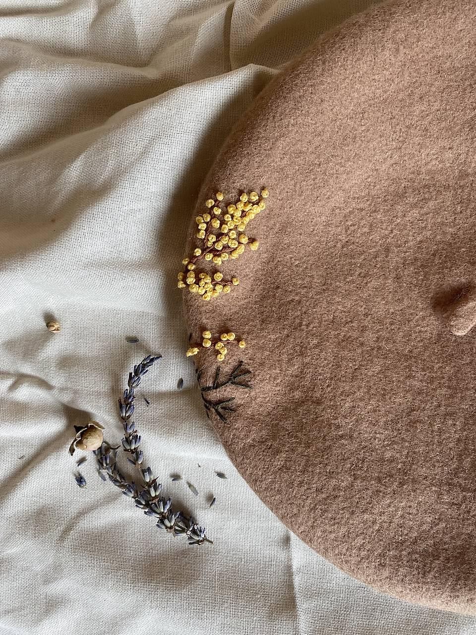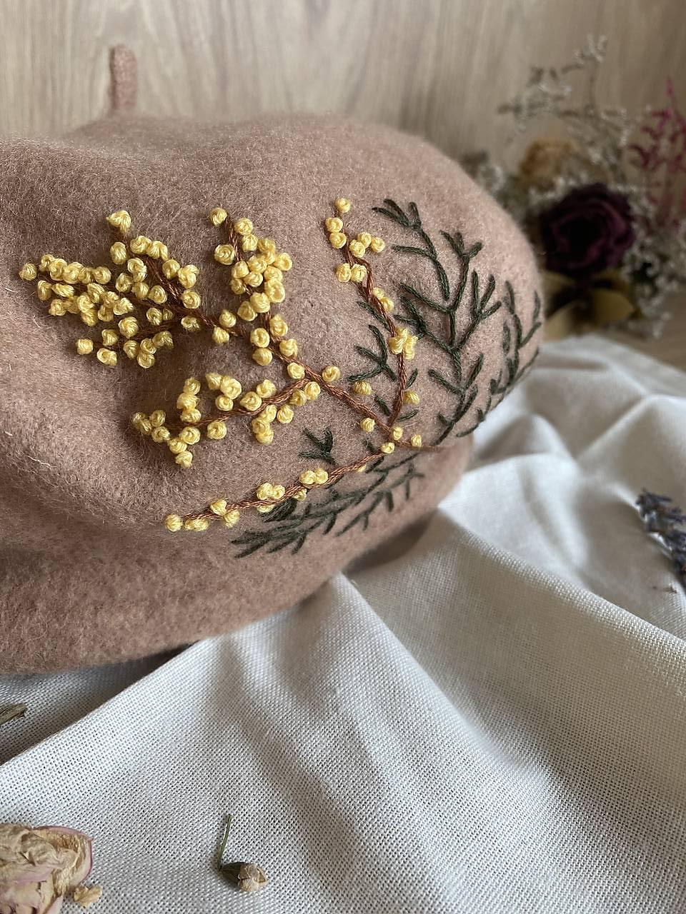 (základná farebná škála je hnedá baretka so žltými bobuľami, po vzájomnej dohode je možnosť personalizácie farby baretky i farby bobuľových plodov na vetvičke)
