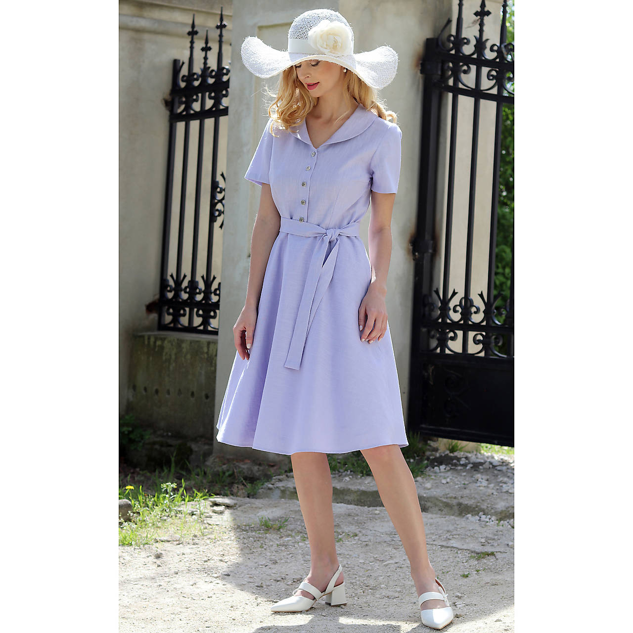 Košeľové šaty zo 100% ľanu, s dlhšou A-čkovou sukňou. Majú šálový límček a krátky rukáv. Šaty sú bez podšívky so zapínaním na gombíky vpredu a na zips na ľavom boku. Môžete ich nosiť s opaskom. K šatám sa dá zakúpiť aj tylová spodnička. Všetky použité materiály boli pred zhotovením predprané.