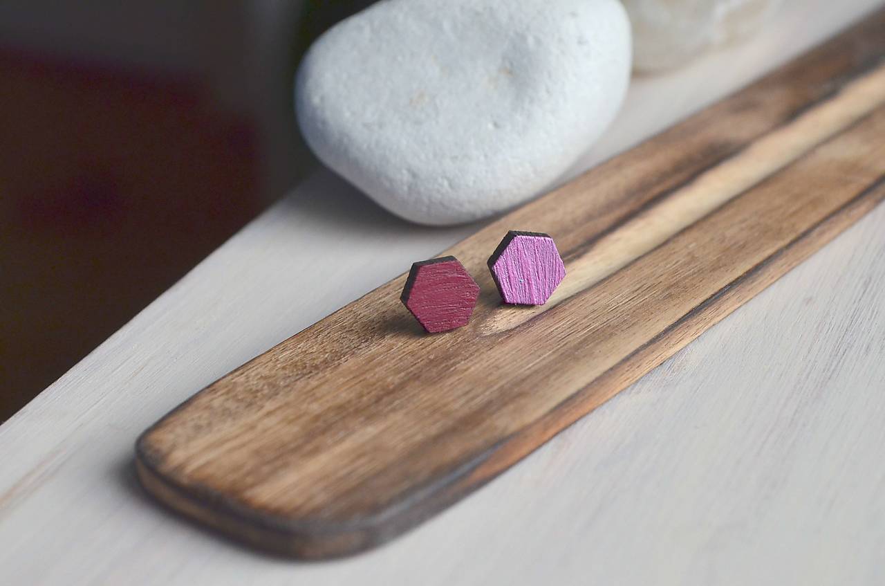 Stylové dřevěné napichovací náušnice malované