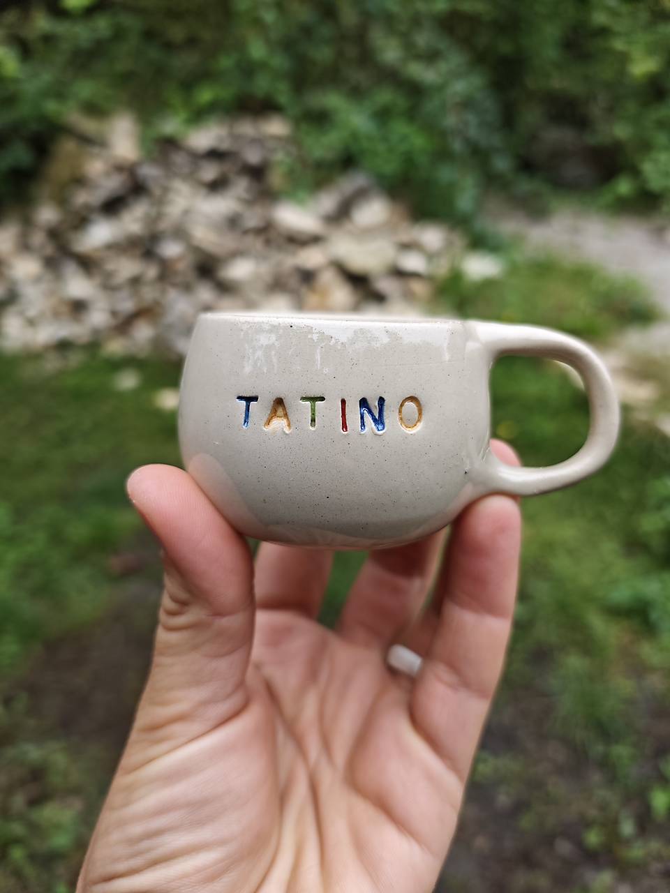 Keramická šálka z kolekcie Milovaní je ručne modelovaná z kvalitnej jemnej kameniny. Na šálke je vytlačený text "tatino".