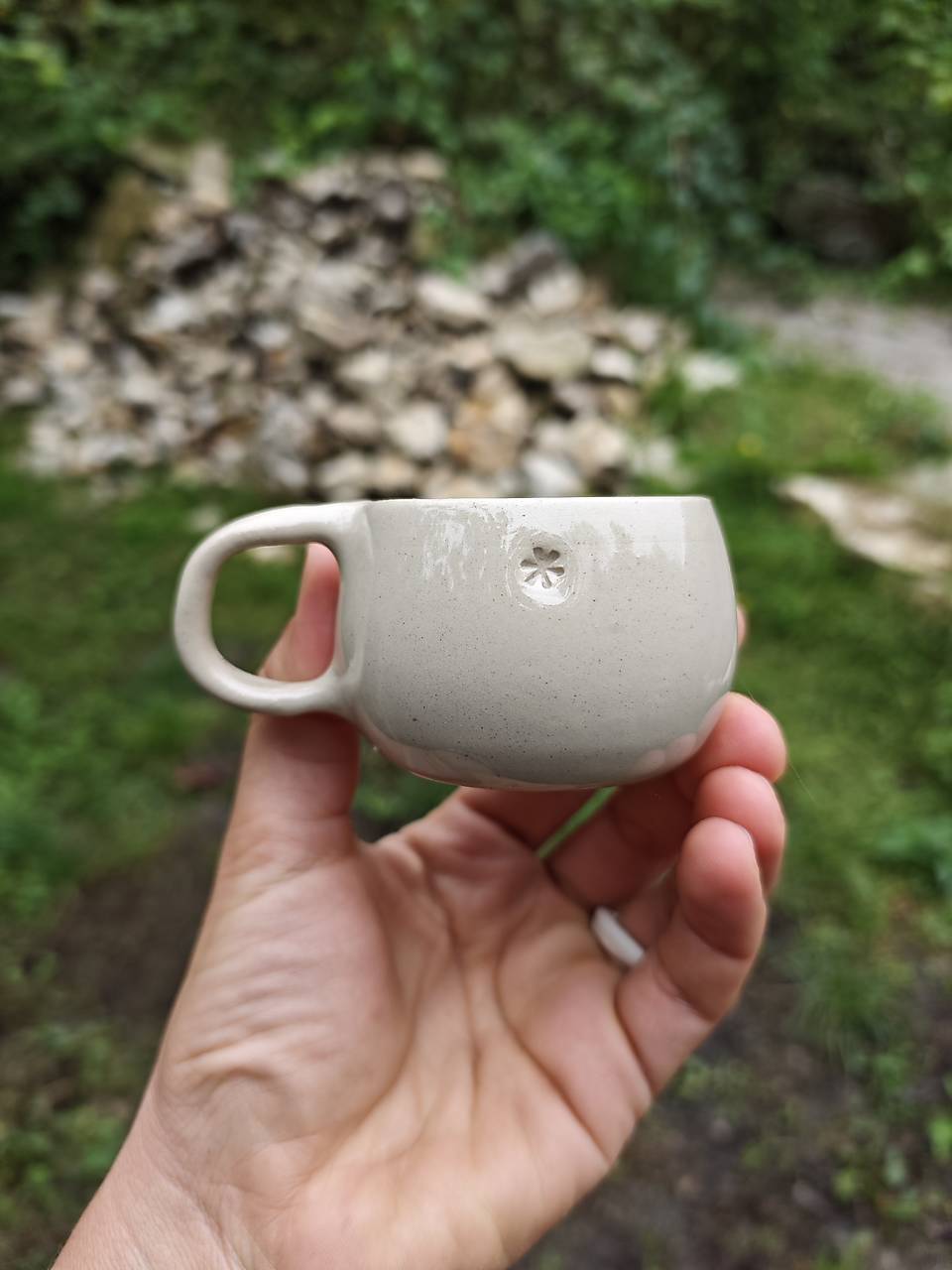Šálka bola dva krát vypálená na vysokú teplotu v elektrickej peci. Po prvom výpale boli ručne maľované pigmentmi jemných odtieňov od českého výrobcu.