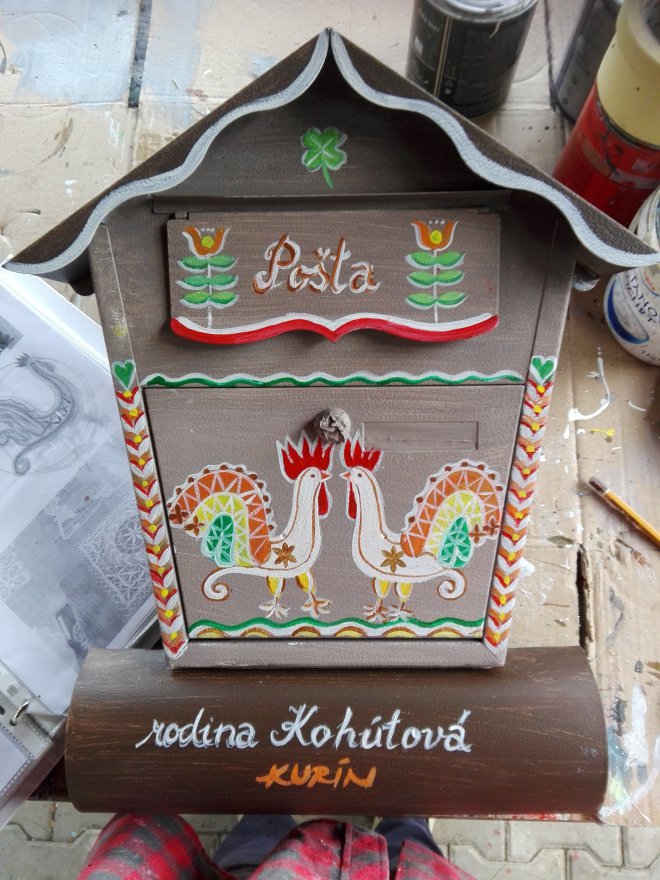 Prvý dojem pri vstupe do domu je často rozhodujúci. Maľovaná schránka s motívom tradičných ľudových ornamentov, lúčnych kvietkov a vtáčikov privíta Vašich hostí aj Vás po ťažkom dni prívetivejšie než všedná plechová.
