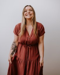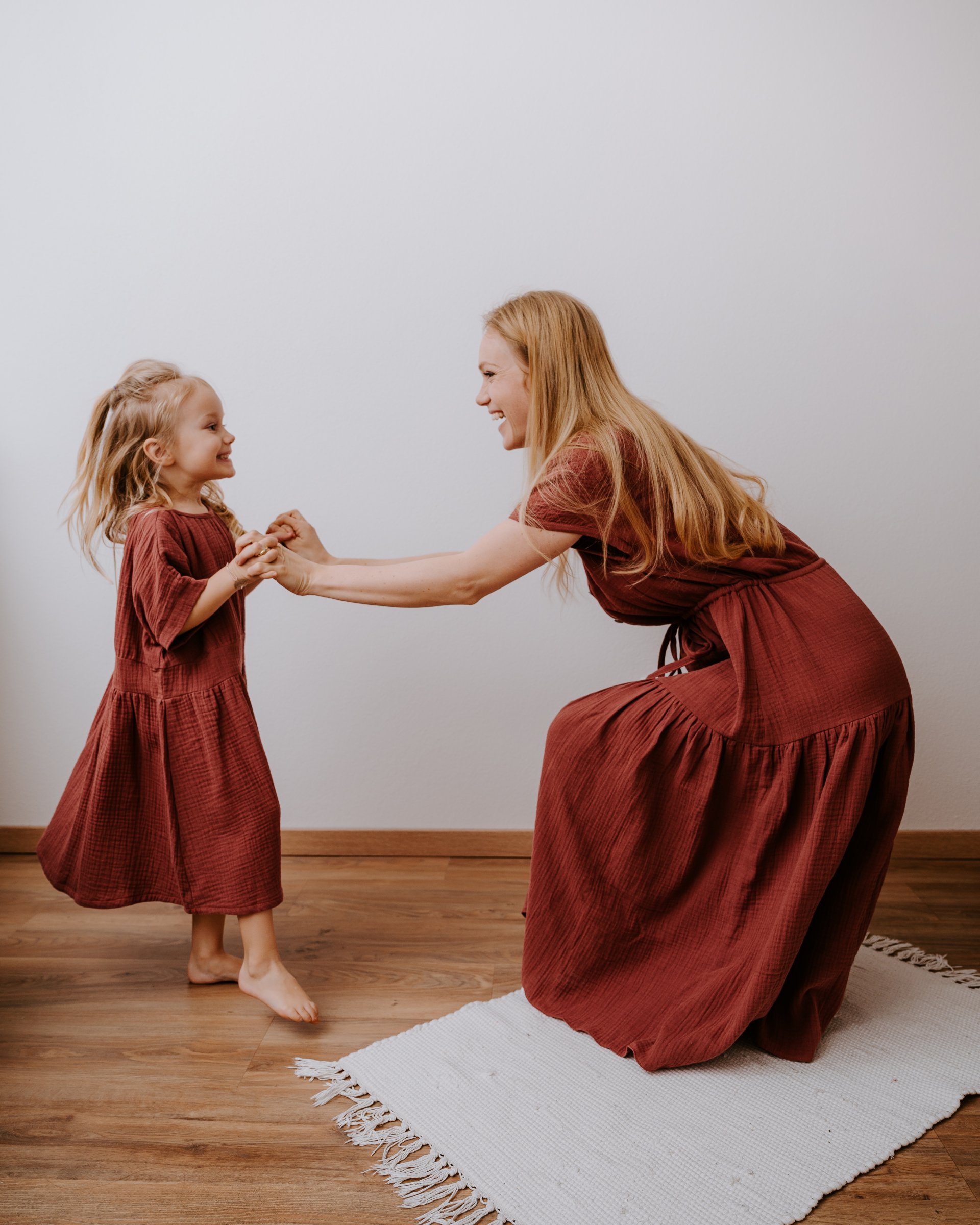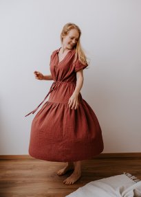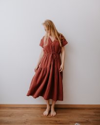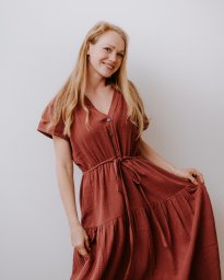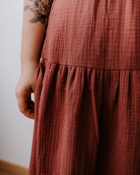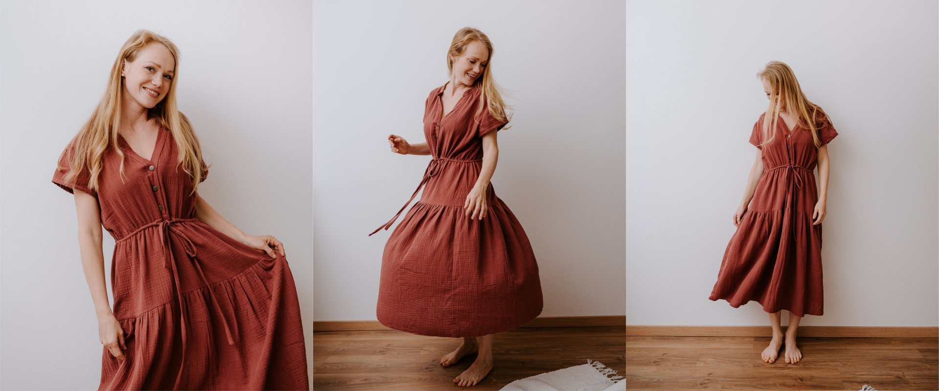 Šaty sú z mušelínu (100% bavlna) od európskych výrobcov, ručne strihané a ušité v Nitre. "Je to veľmi príjemná, mäkká látka, v ktorej sa budete cítiť príjemne," napísala nám Dominika, s ktorou sme nové mušelínové šaty nafotili. A má pravdu, mušelín je pohodlný a napriek tomu, že je úplne bez elastickej prímesi, telu sa krásne prispôsobí a tak vás nič neťahá ani netlačí, šaty z neho oceníte v práci, vonku aj doma.