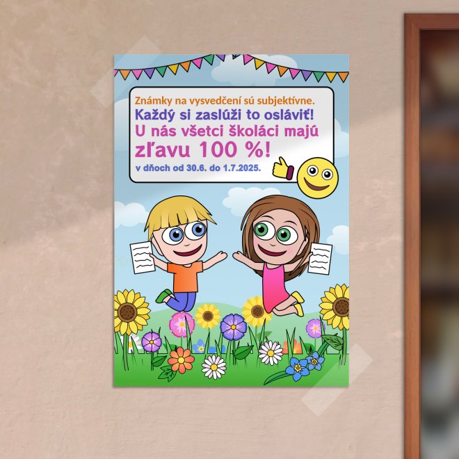 Takto si predstavujem reklamu, ktorá má zmysel. Pútavú, ktorá spraví radosť aj deťom, aj danému podniku prostredníctvom reklamy (a mne kúpou a využitím mojej grafiky :D). Ale hlavne – reklamu, ktorá má aj myšlienku, ktorá čo decentne pripomenie rodičom aj žiakom, že hodnotiť deti podľa známok a podmieňovať na základe toho odmeny (ba dokonca tresty) je ako merať lásku pravítkom. Jeden veľký samoúčelný až škodný nezmysel.