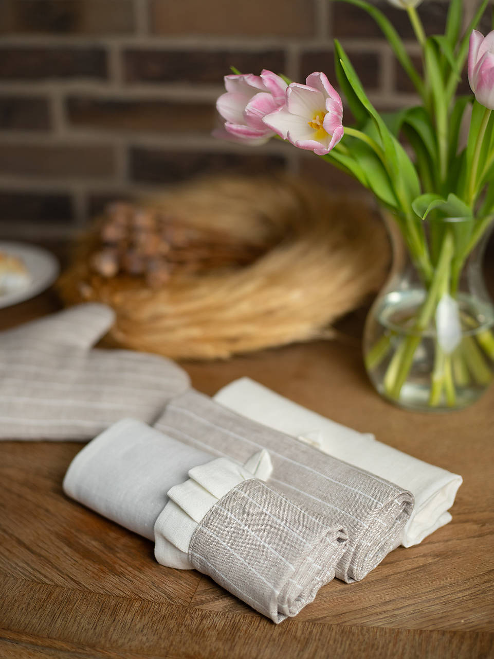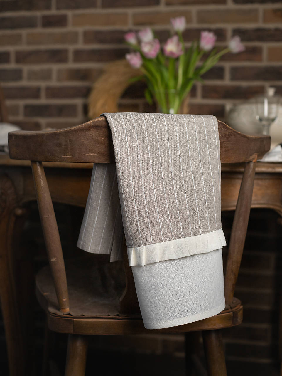 Na tieto utierky sme použili natur ľan so smotanovým prúžkom a smotanový ľan.