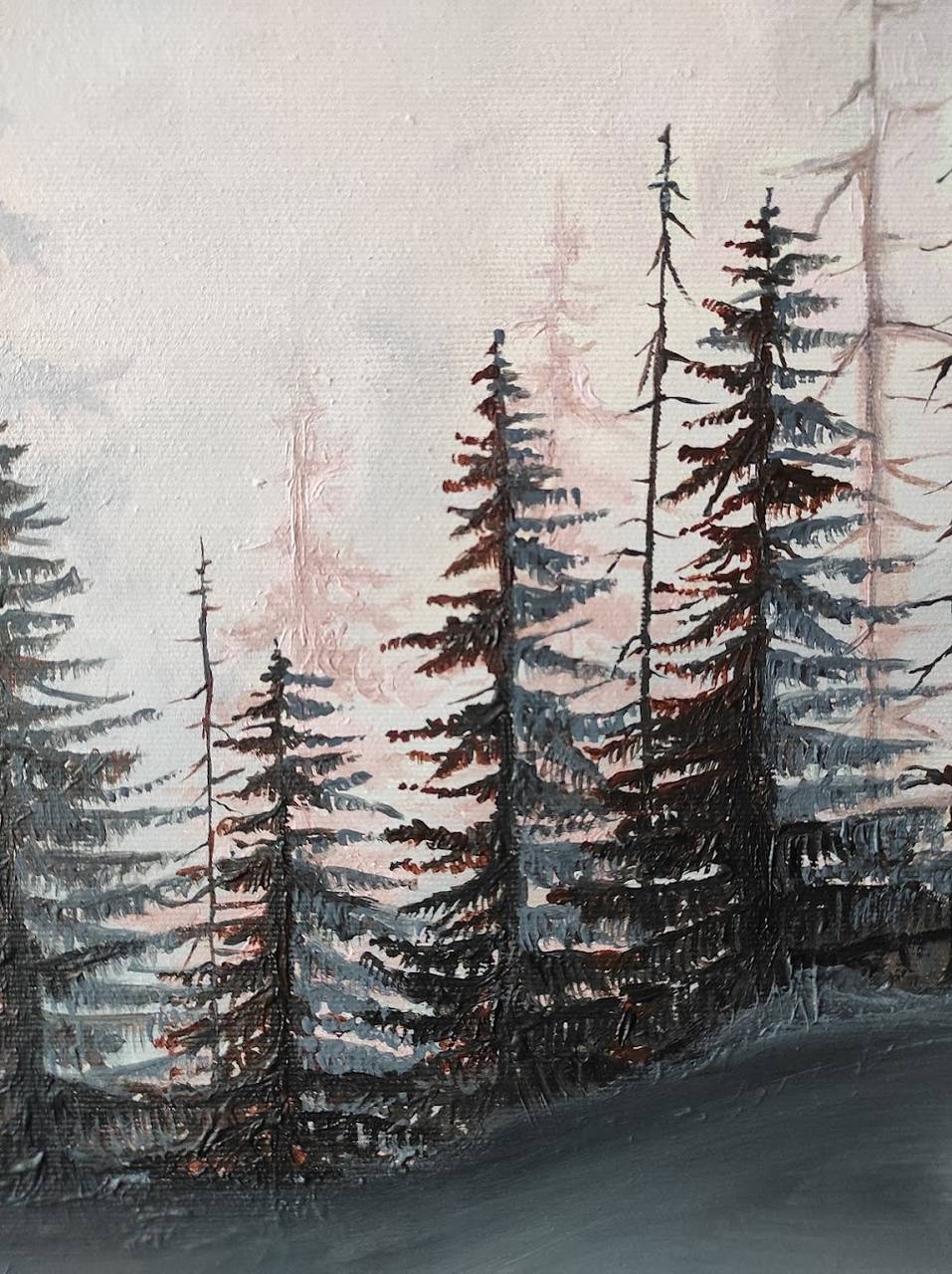 Maľba kvalitnými akrylovými umeleckými farbami na bavlnenom plátne. Povrch plátna je ošetrený niekoľkými vrstvami matného laku. Obraz posielame natiahnutý na blindráme - drevenej konštrukcii.